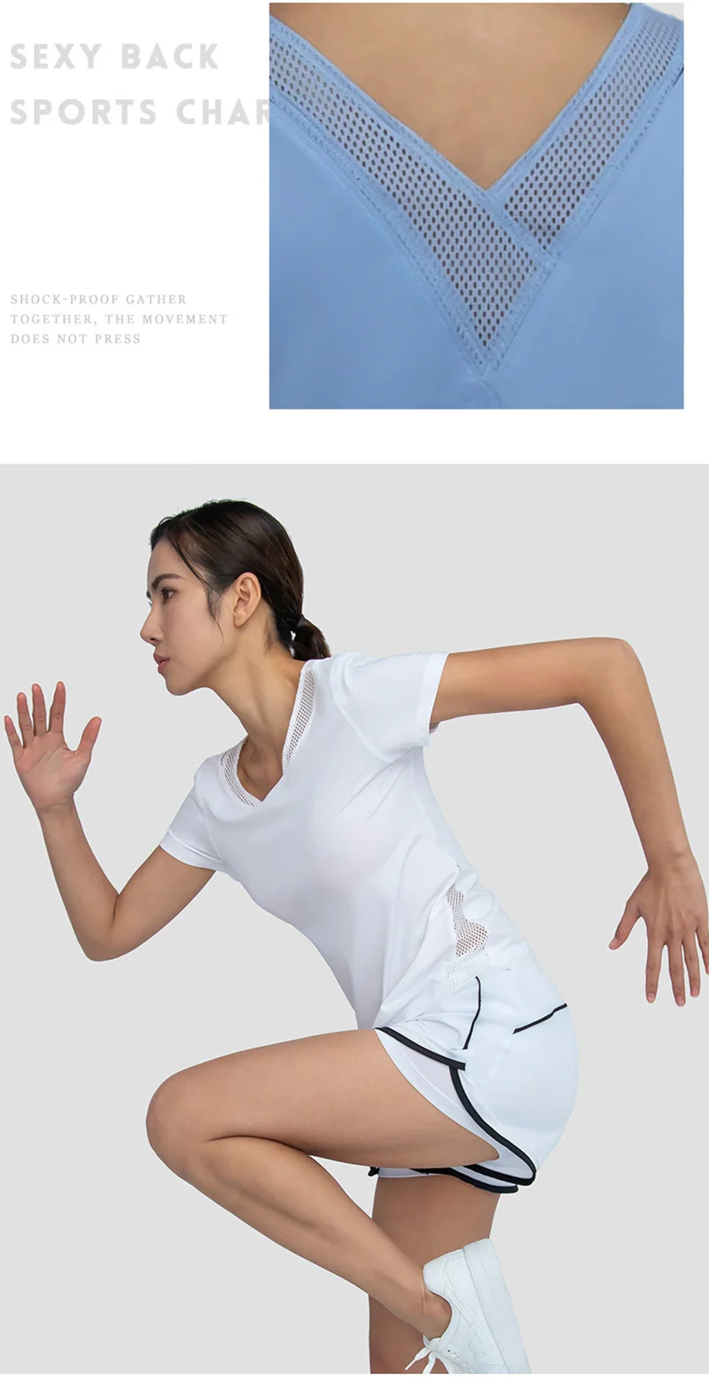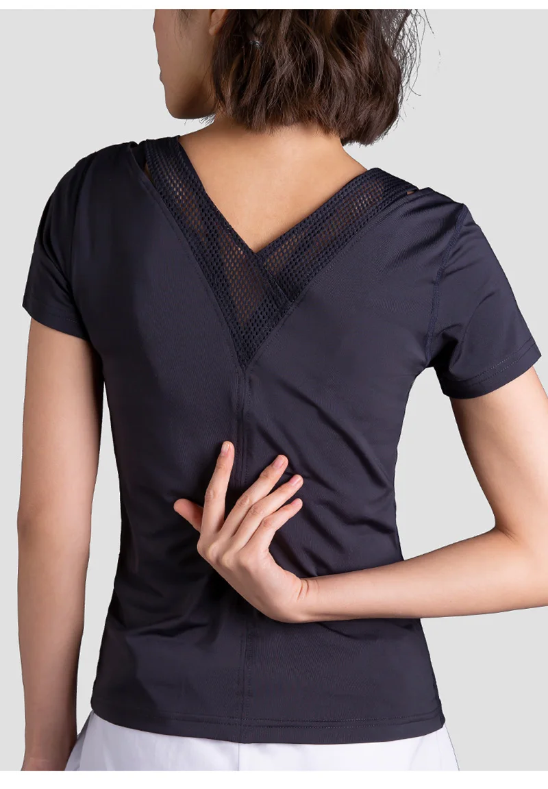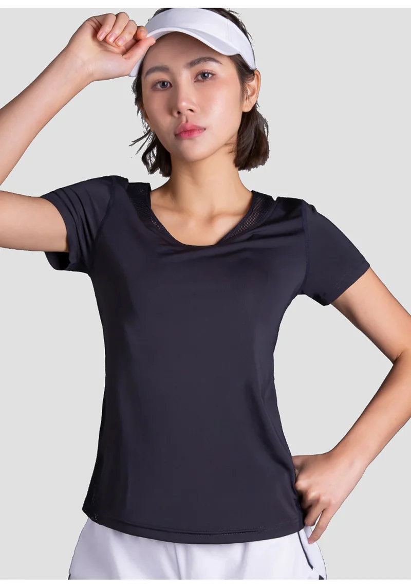 Новая женская быстросохнущая дышащая спортивная футболка с коротким рукавом для йоги