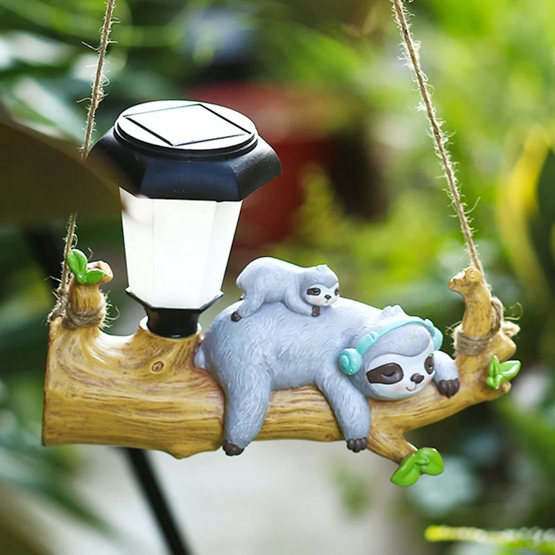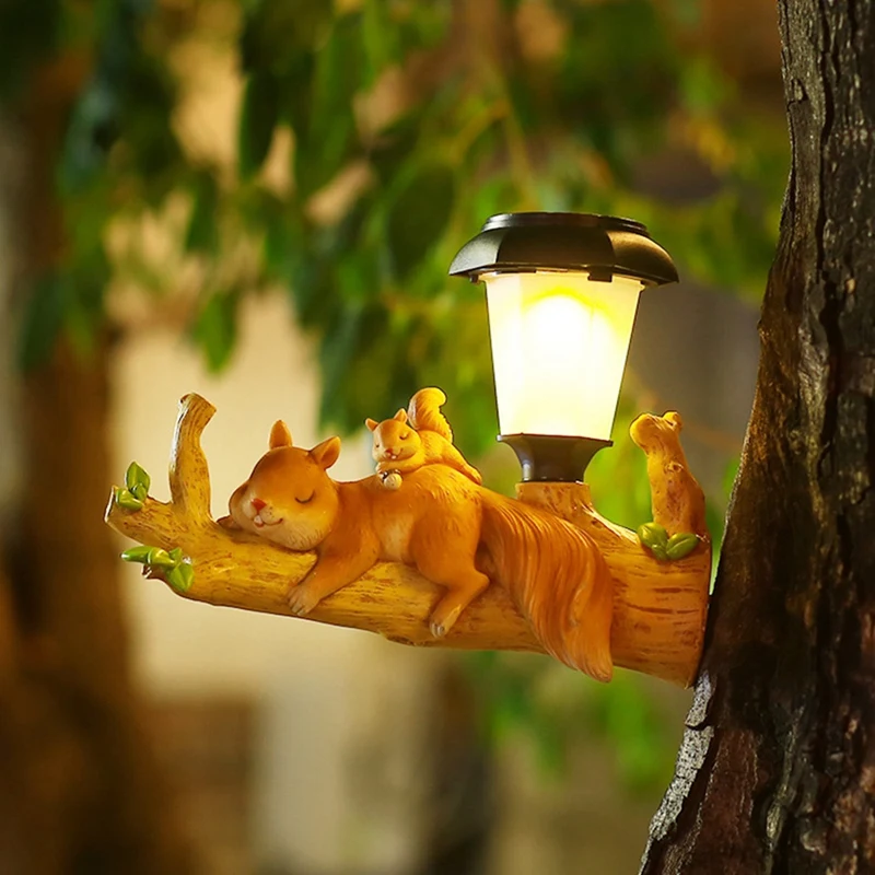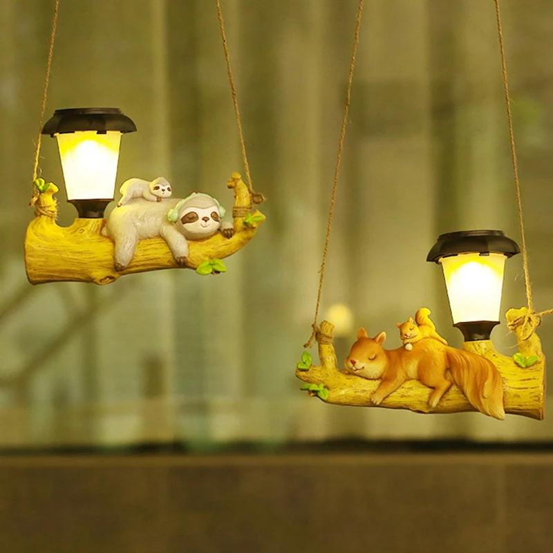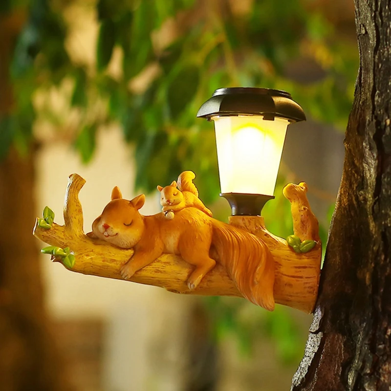 Эти садовые статуи украшены солнечным фонариком, очень декоративный и функциональный светильник.