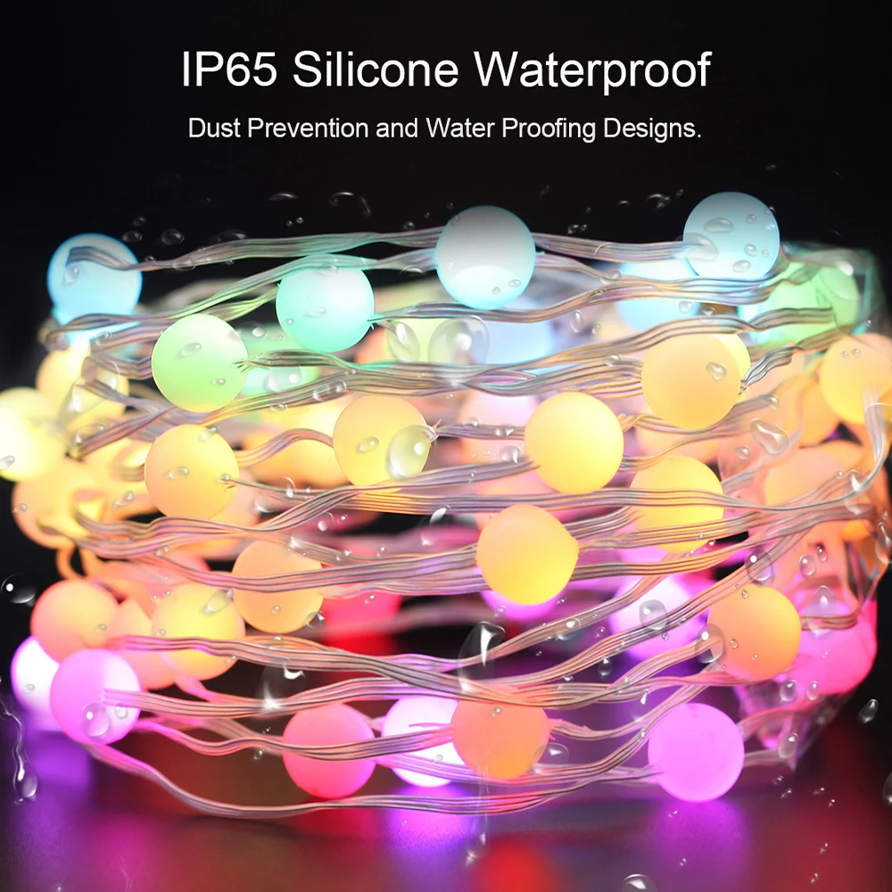 Светильник fairy string может быть подключен к смартфону APP Tuya или Smartlife через технологию Wi-Fi и Bluetooth 5,0. Встроенный микрофон, поддержка голосового ассистента alexa и google.