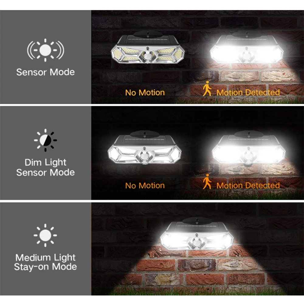 【Три режима работы 】-этот солнечный свет имеет три режима работы, вы можете выбрать режим датчика движения или режим всегда свет на
