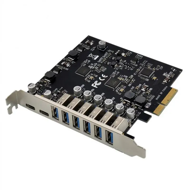 Карта PCIe ASM3142 6A2C USB3.1 10 Гбит/с обеспечивает шесть USB-A и два USB-C с помощью комбинированных чипов ASM3142 и VL822,