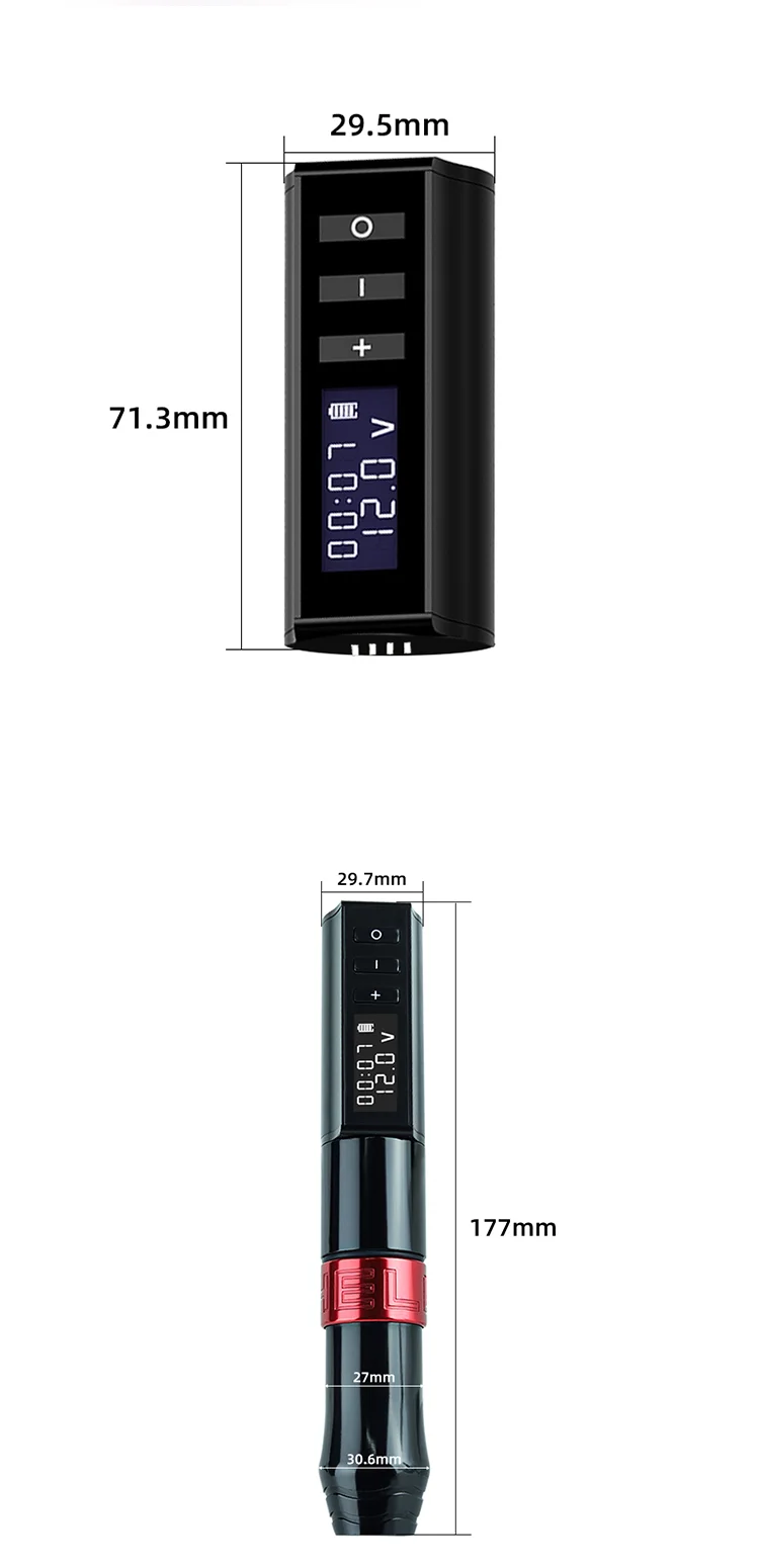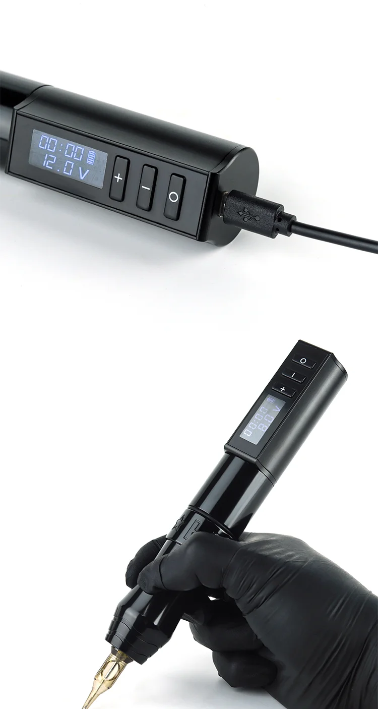 Конфигурация: Беспроводная тату-ручка + головка преобразователя постоянного тока + кабель постоянного тока + usb-кабель для передачи данных + коробка;
