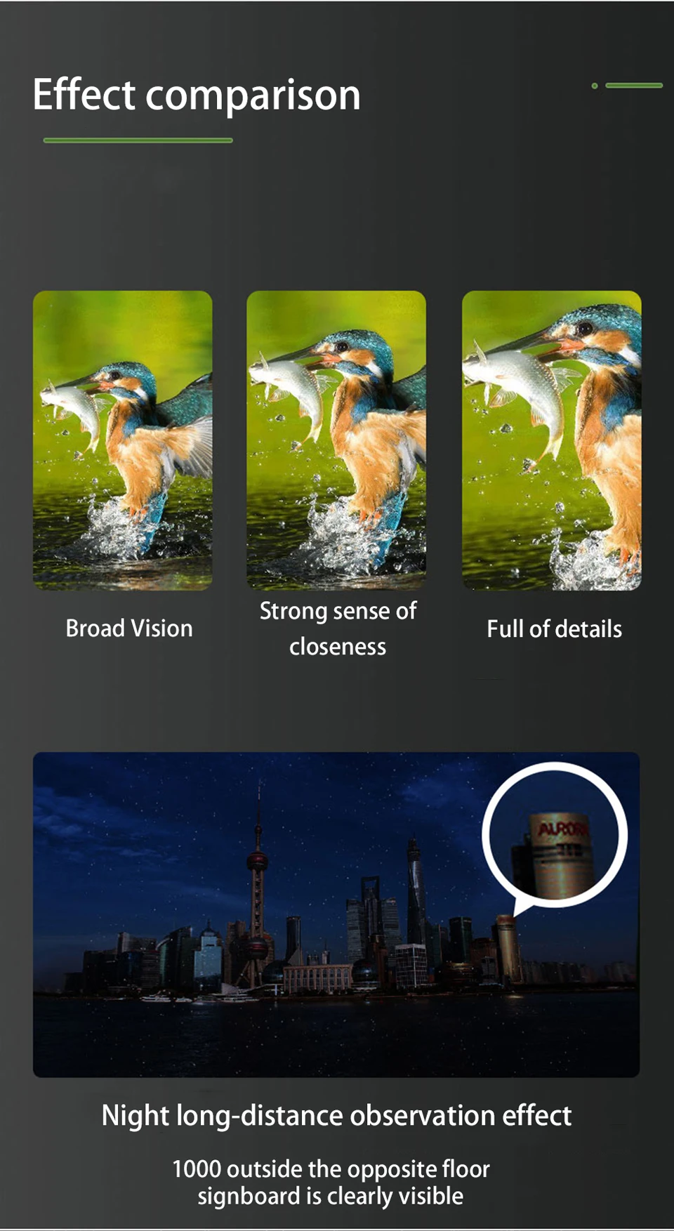 【Основная функциональность 】 1,50 мм, супер большой объектив, стабильный просмотр (не легко встряхнуть)