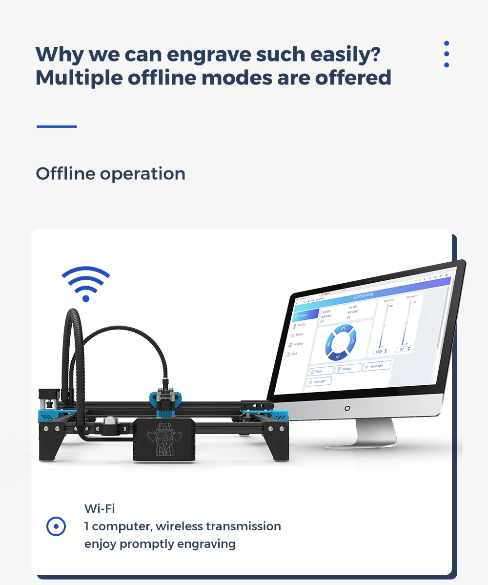 Режим гравировки: USB Online, tf-карта (программа приложения, управление веб-страницами)