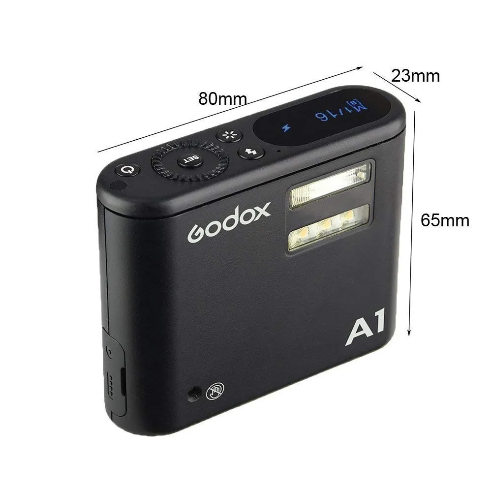 Compatible with 2.4G and 433MHz wireless transmission, Godox A1 flash can not only serve as a smartphone flash but also can let smartphone synchronize the professional flashes with abundant functions and great portability.