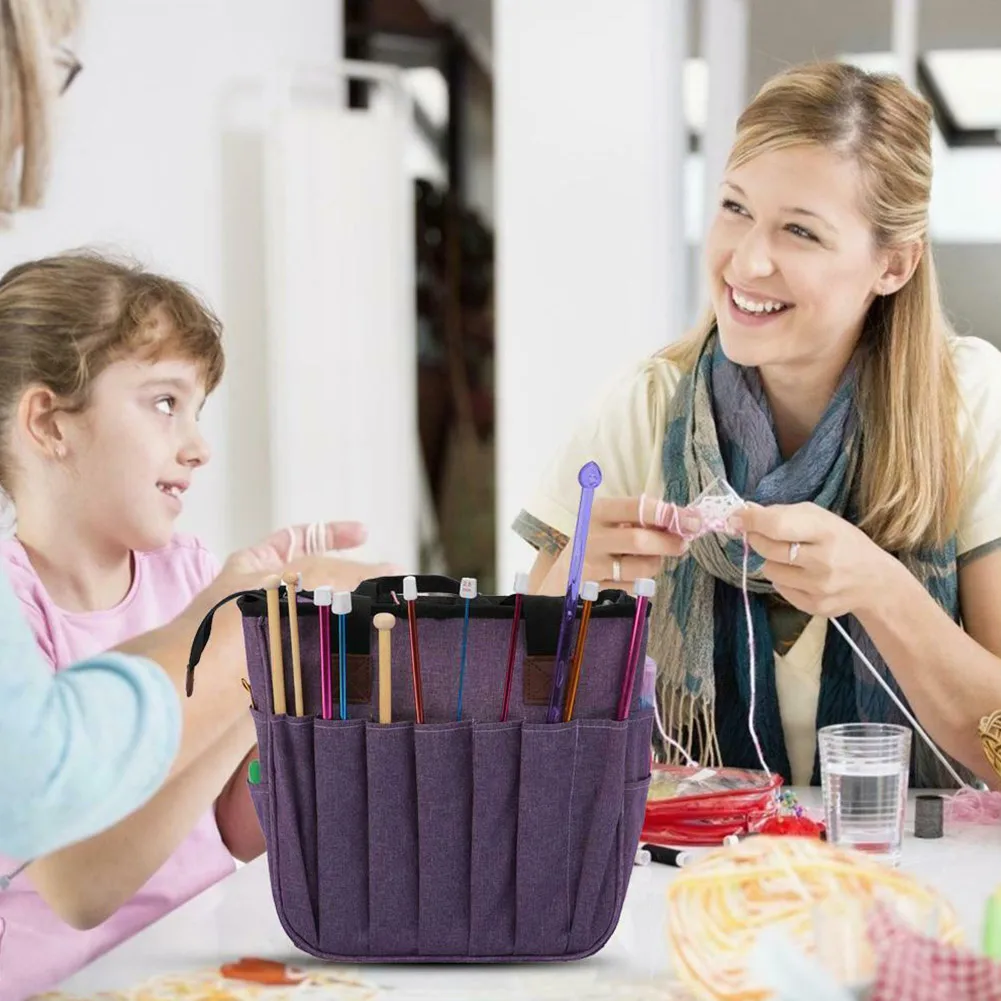 Needles, hooks, scissors, phone, patterns etc. Tools are easy to find and store and you'll have everything on hand!