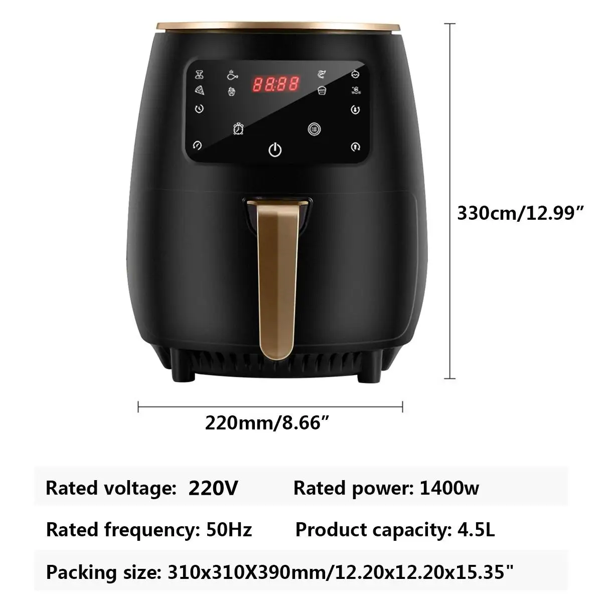 -Большая 4,5 л пространство для приготовления пищи: он может Фрай более вкусная еда в одно и то же время и легко удовлетворять ежедневные потребности каждого члена семьи.