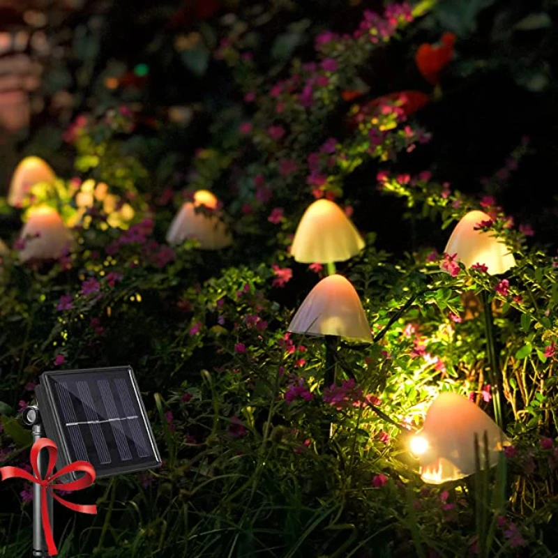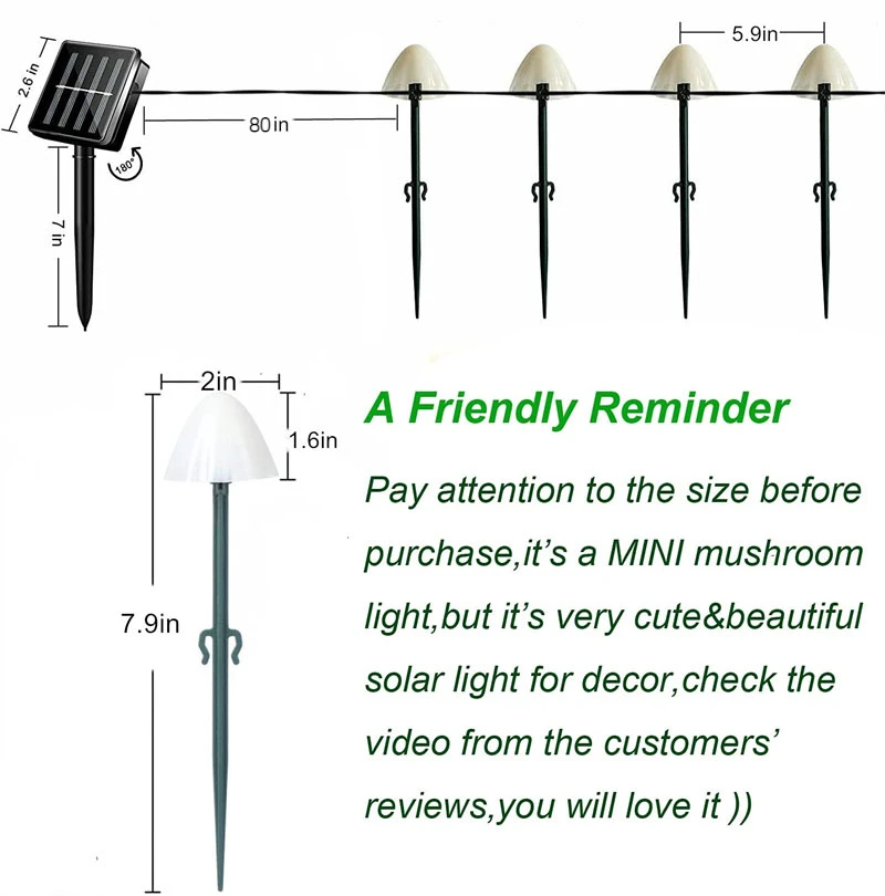 Светодиодный гирлянда на солнечной батарее имеет форму высокого имитируемого гриба, выглядит как настоящий гриб в вашем саду, красиво украсит ваше дерево, забор, переднюю дорожку или крыльцо, создает теплую и приятную атмосферу.