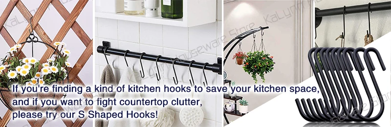 Эти крючки-это простое, но блестящее решение для хранения вещей на вашей кухне или гараже, где ограничено пространство. С s-образными крючками вы можете легко организовать эти набитые вместе кухонные принадлежности или инструменты для мастерской.