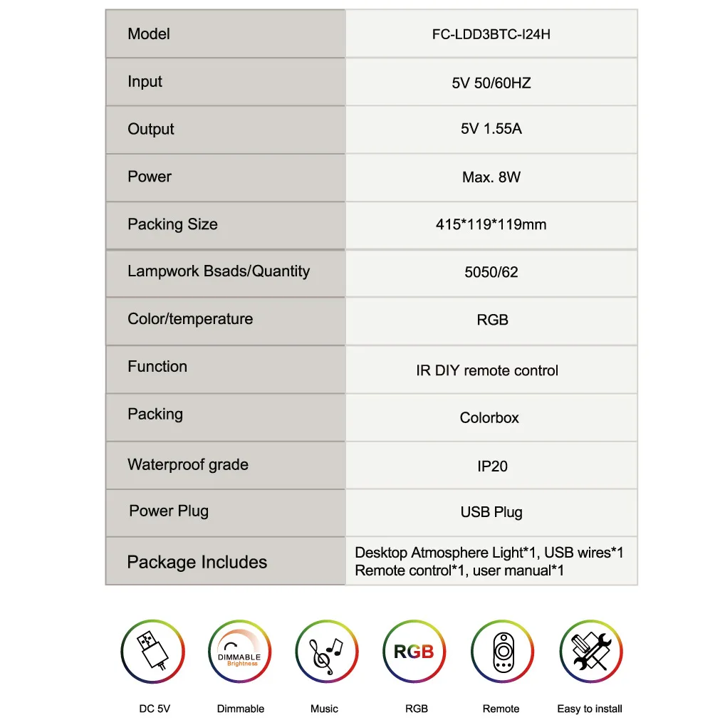 Посылка: настольный атмосферный светильник * 2, usb-провода * 1, пульт дистанционного управления * 1, руководство пользователя * 1