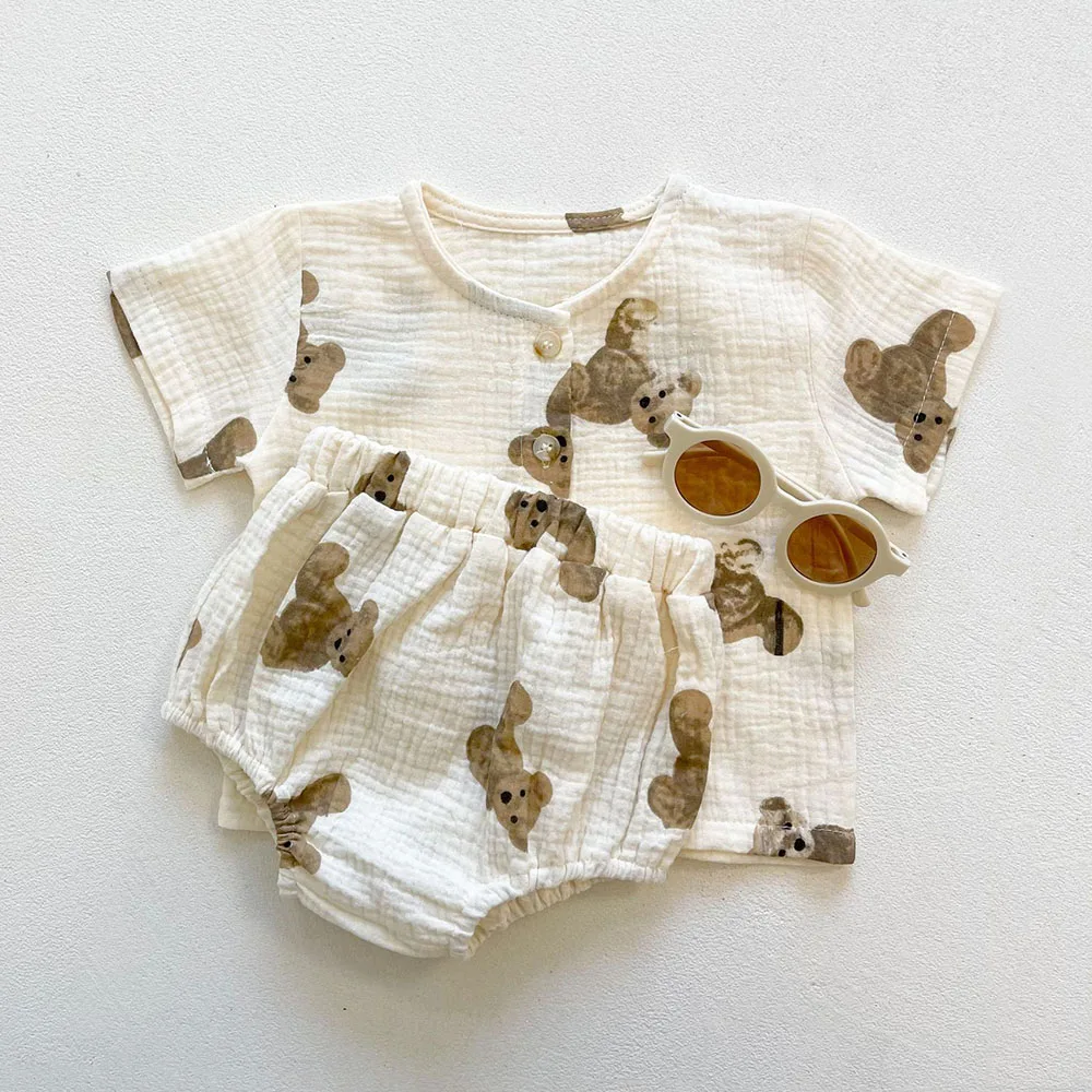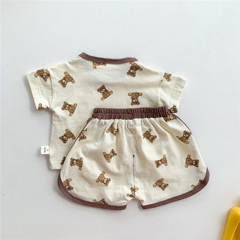 Комплект одежды для маленьких мальчиков; Летняя одежда для малышей; Футболка с рисунком медведя + шорты; Комплект из двух предметов; Одежда для новорожденных мальчиков и девочек