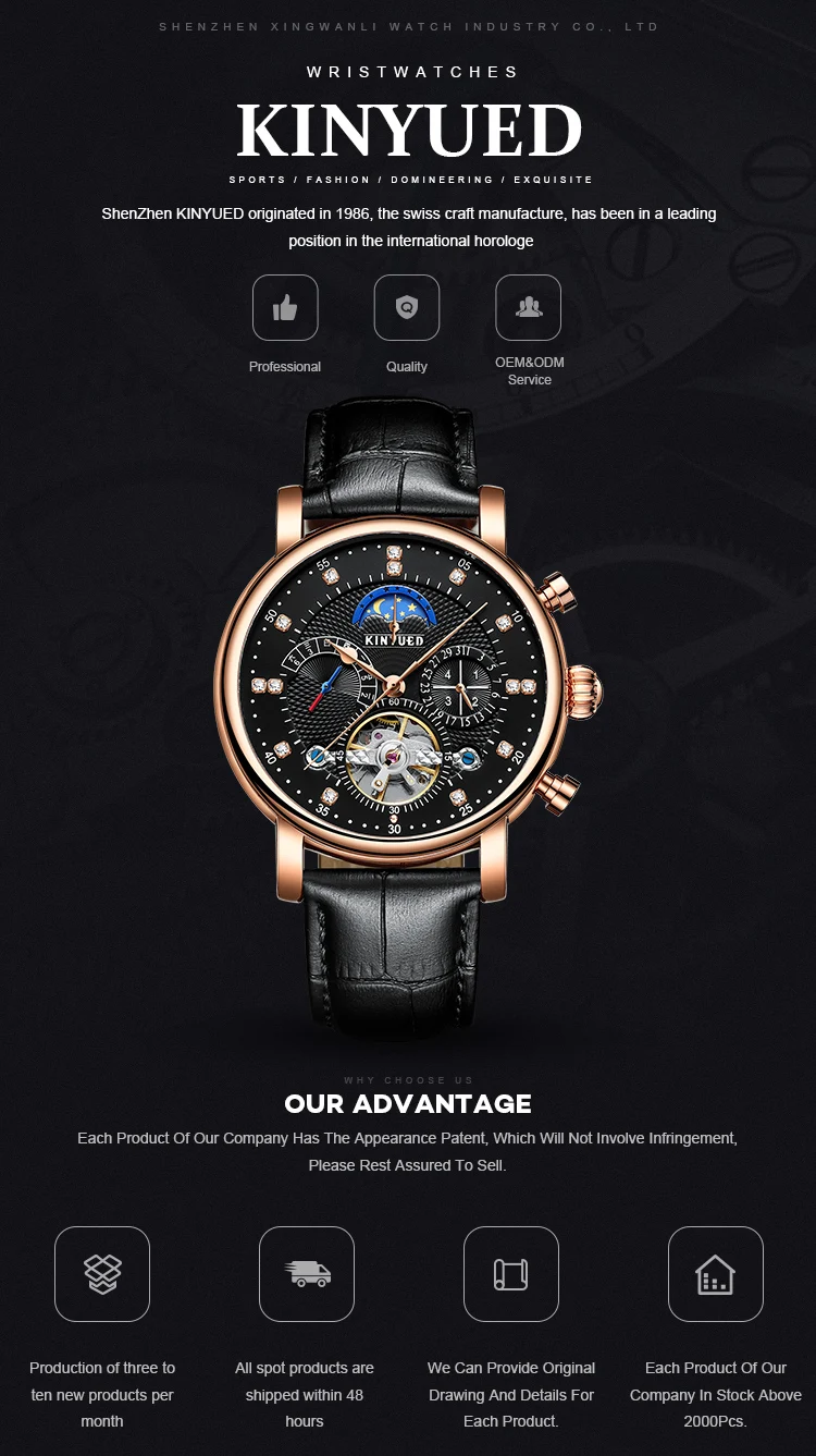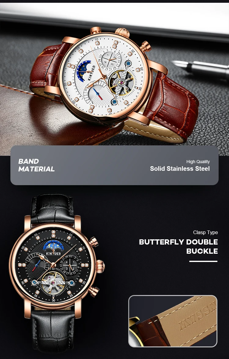 KINYUED Роскошные 42 мм автоматические механические часы для мужчин 3br водонепроницаемые маховик Турбийон Механические часы кожаный ремешок
