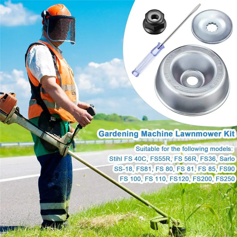 Садовая газонокосилка Размеры набора: отвертка 5,0 "/128 мм, Rider пластины 3,15"/80 мм Диаметр; С отложным воротником; Фирменная гайка 0,98 "/25 мм Диаметр, упорная шайба 1,65", 42 мм, версия Диаметр.
