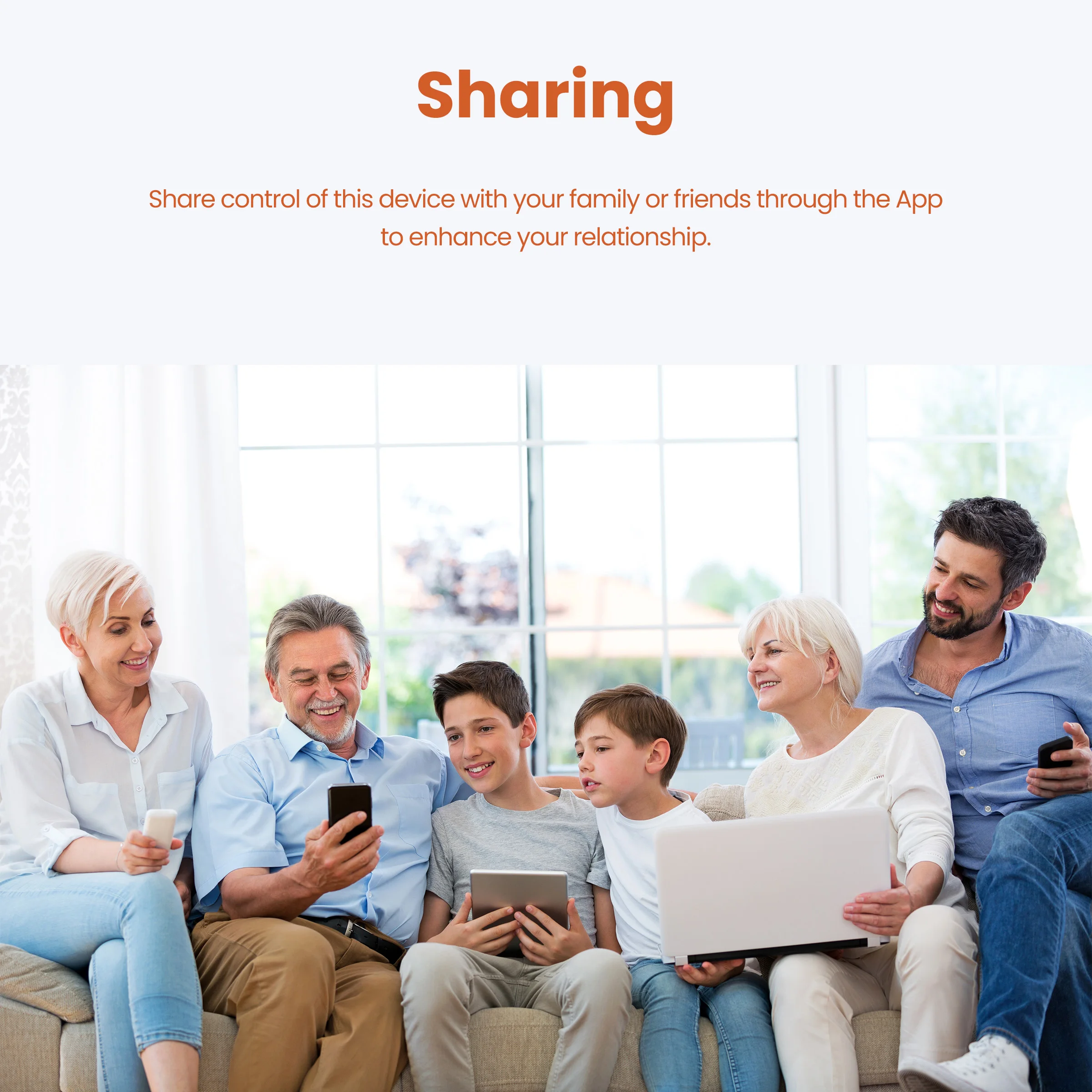 Share control of this device with your family or friends through the App to enhance your relationship