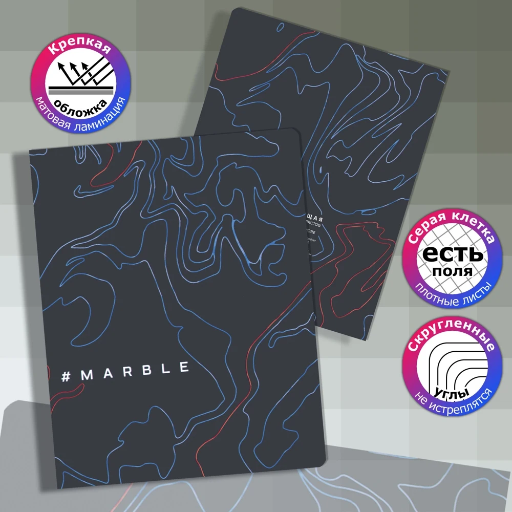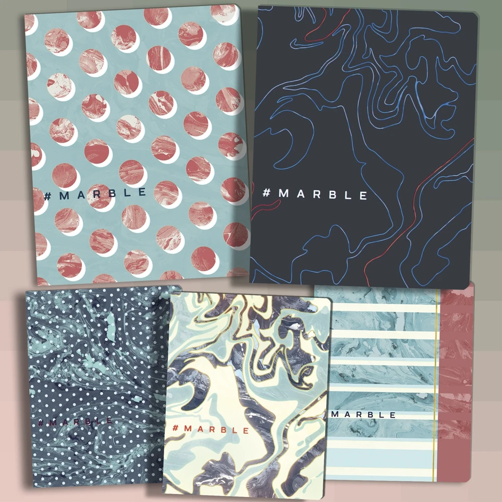 Набор (комплект) из пяти стильных тетрадей 24 листа (48 страниц) в клетку дизайна Мрамор Marble. Эта серия подойдет, как для ведения школьных, студенческих и офисных записей, так и повседневных нужд.