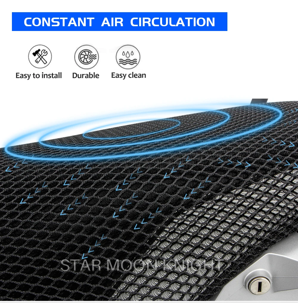 Этот чехол для сиденья-это кондиционер для вашего оригинального сиденья мотоцикла TRK 502. Воздух может циркулировать во время вождения, потому что крышка трехмерная. Даже при большом весе, он не может быть полностью сжатым: это не только обеспечивает воздухопроницаемость, но и сохраняет ваши ягодицы сухими, когда идет дождь. Крутой чехол не нагревается даже при прямых солнечных лучах. Еще один плюс: это создает массажный эффект и тем самым уменьшает признаки усталости.