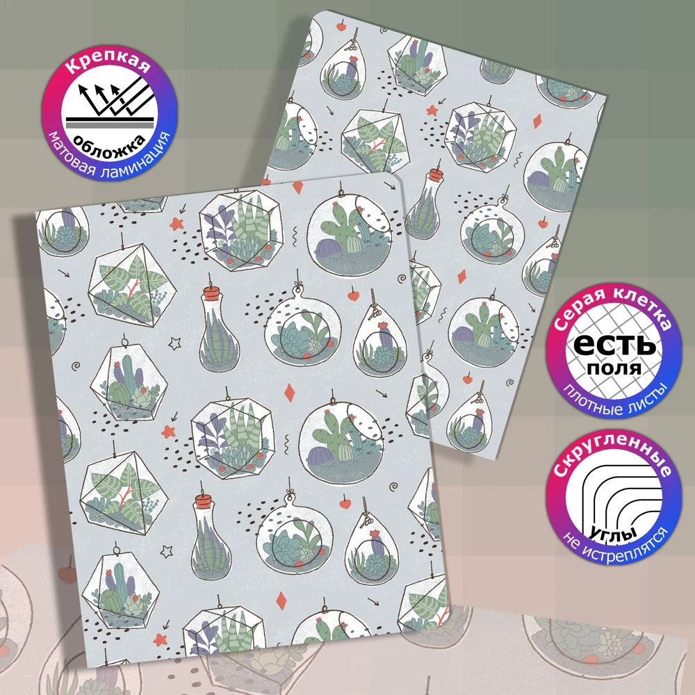 Material cover Laminated cardboard Series Cacti Floor baby Unisex Country-manufacturer Russia Type Notebook Marking Plaid Density of paper, g/m2 70 Features of diaries, notebooks, calendars Field Features of diaries, notebooks, calendars Rounded corners Number of sheets, PCs. 48 Abstract If you are looking for stylish notebooks in a cage, such as could highlight you among classmates, classmates or colleagues, in front of you the most suitable set. These are spectacular school notebooks with cactus. You'll be saving this tetradec set. It is so beautiful that it is a pity to write in it. each school notebook from a set to a cage of 48 sheets.Последние несколько лет часто пользуюсь услугами этой компании, частенько делаю заказы, для дома, для детей и для себя любимой, и... Читать отзыв полностью...