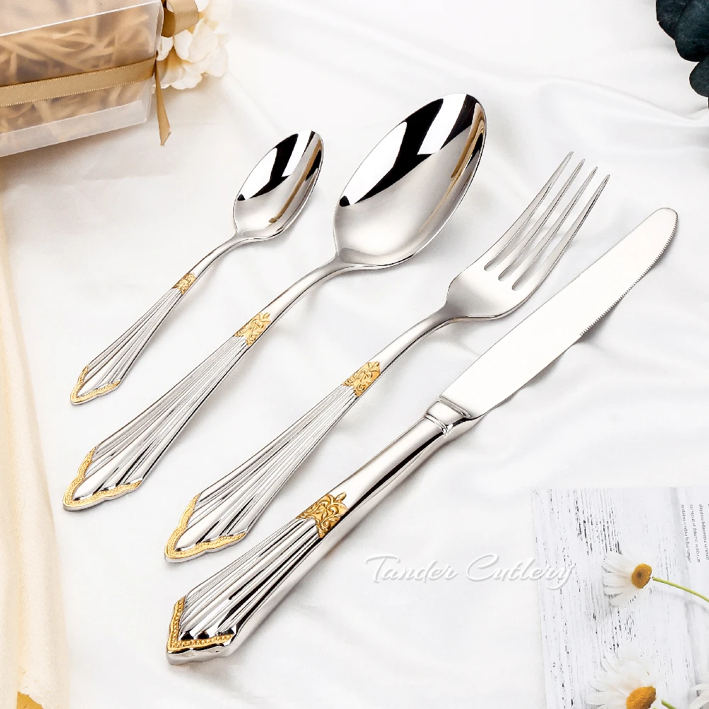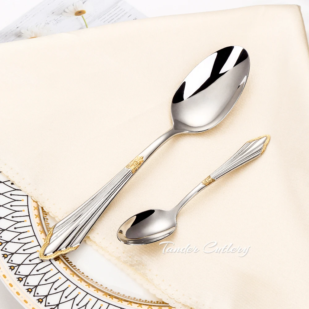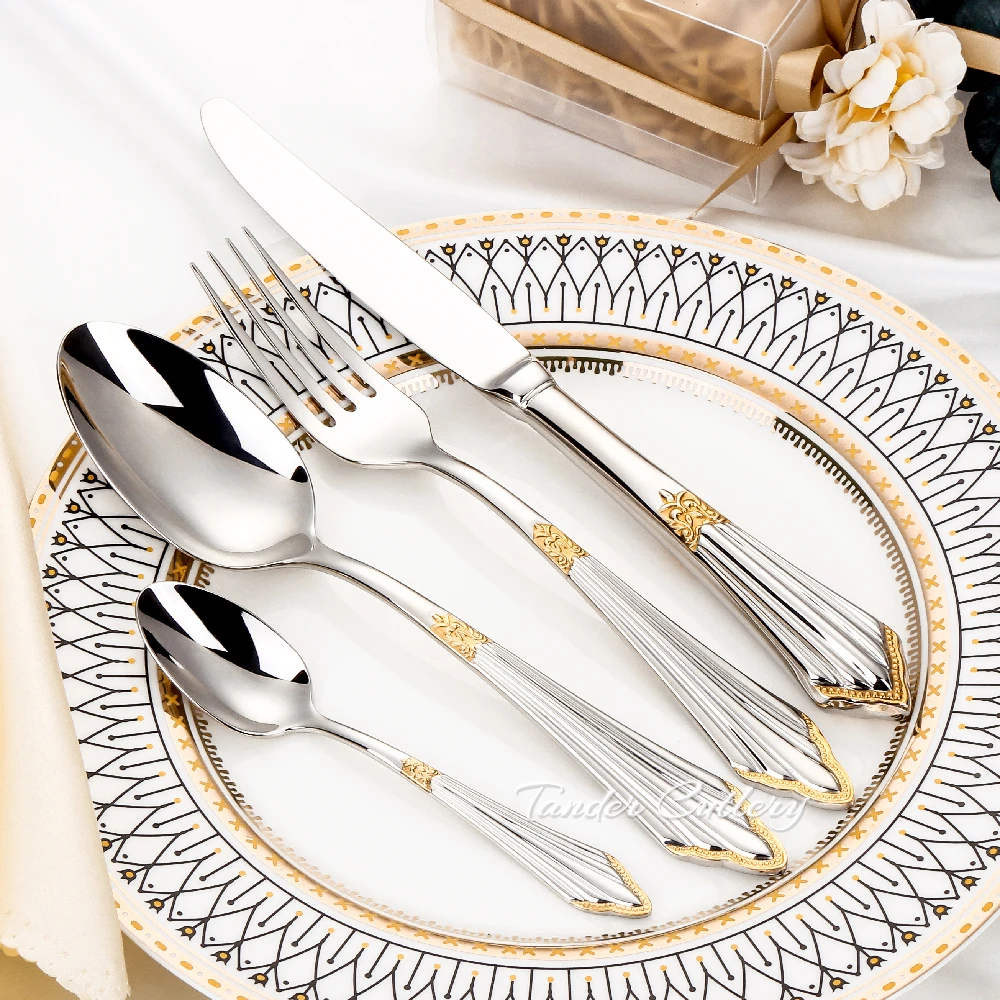 8/12/16/20/24 шт. столовый набор позолоченных ножей из нержавеющей Сталь Посуда роскошный Ножи, столовая ложка, вилка, набор для мытья в посудомоечной машине столовые приборы для ресторана дома Семья вечерние Свадебная вечеринка Вечерние