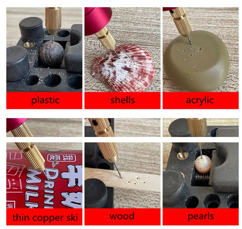 1. Он может сверлить только пластик, дерево, акрил, жемчуг, бумажные изделия, Бодхи, ракушки, фруктовые ракушки, буддийские бусины, тонкую медную кожу, электрические тонкие алюминиевые пластины, подмонтажные платы и тому подобное. (Материал сплава может быть пробит только в пределах 2 мм);