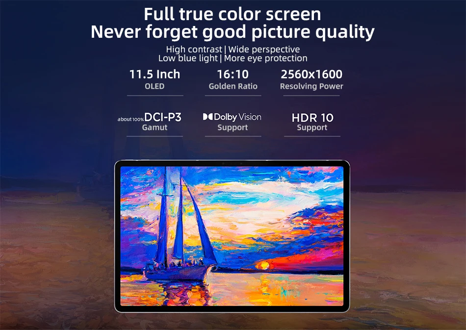 Экран: 11,5 ''OLED 90 Гц Экран, 420 нит; Разрешение: 2560*1600P,