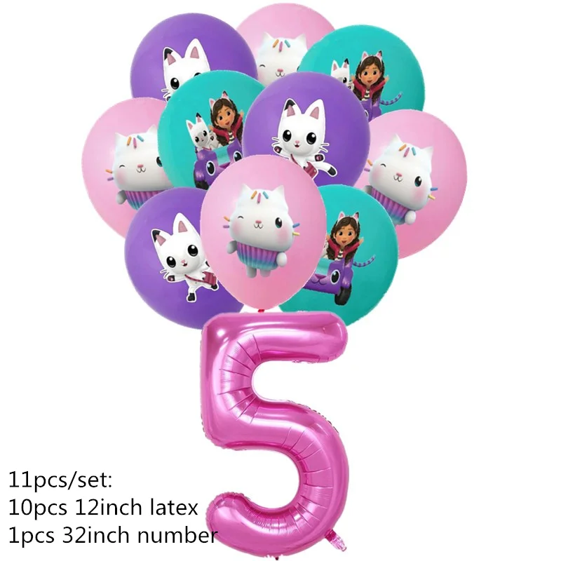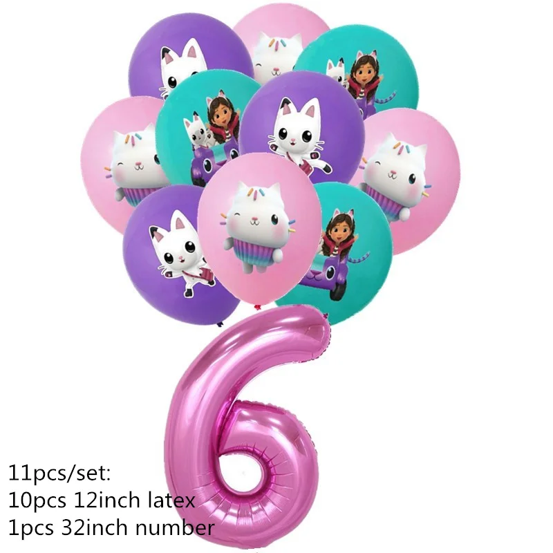 11 шт., Габби, кукольный домик, кошки, латексный номер, воздушный шар для дня рождения, товары для вечеринки, Gabby, кукольный дом, декор для вечеринки, детский душ, подарок для девочки
