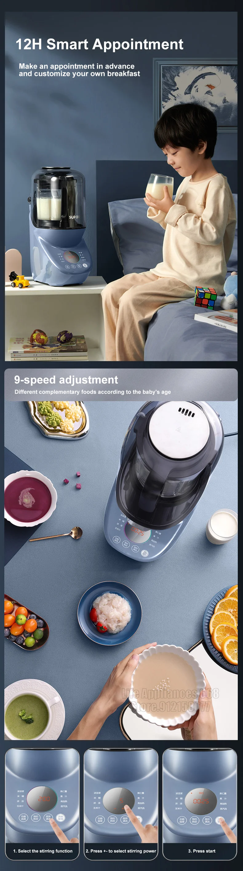 ●1300W large firepower, 9-speed adjustment, can be matched with different complementary foods according to the baby's age