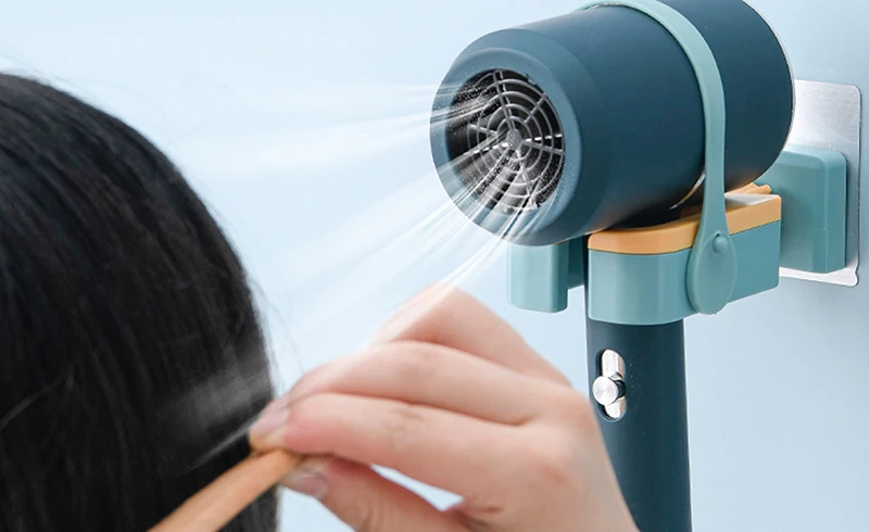 Настенный держатель для фена имеет фиксирующий ремешок для фиксации фена. Отпустите руки, и руки больше не будут болеть от длительного удерживания фена.
