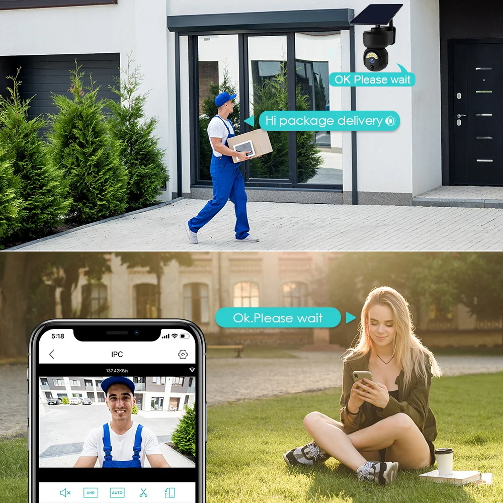 2. Камера в основном используется в окружающей среде без интернета, не может поставить питание, но имеет мобильный сигнал sim-карты и Солнечный. Вам нужно поместить sim-карту в камеру и подключиться к интернету через sim-карту.