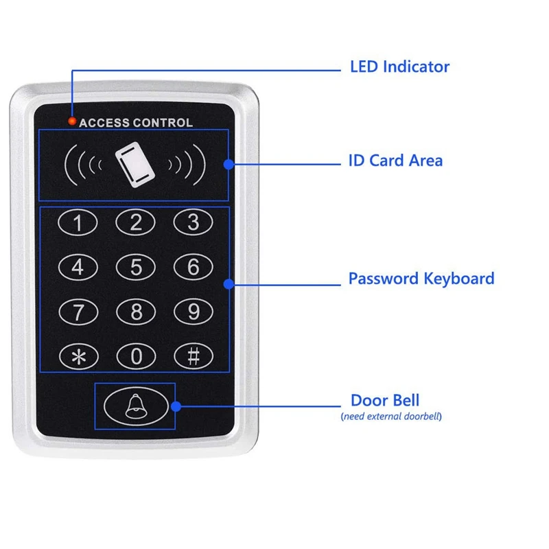 [Поставляется с 5 RFID брелками] каждая карта предварительно запрограммирована с уникальным идентификационным номером, который напечатан на брелке. Только ID-брелок, авторизованный системой контроля доступа, можно открыть дверь.