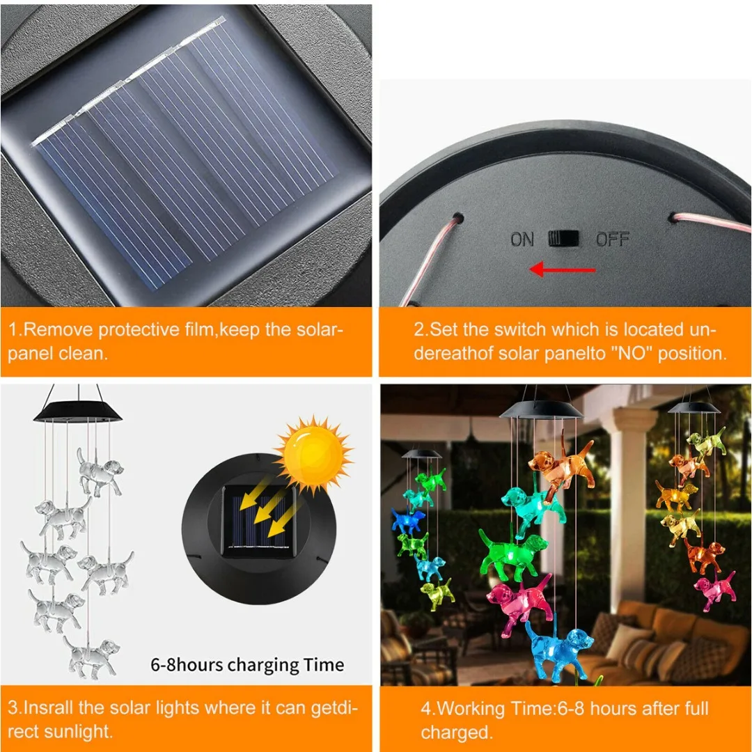 Простота в использовании: удобно подвешивать, солнечная энергия, нет проводов или внешнего электричества, необходимого для использования. Милая собака украсит ваш сад.