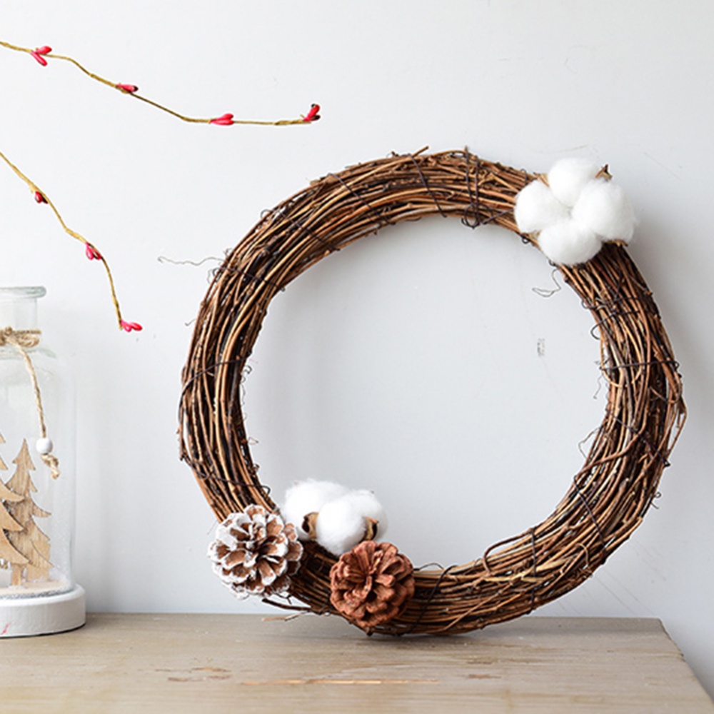 3. Гирлянда из ротанга DIY: с плетеными кольцами из натурального ротанга, любители рукоделия могут добавить различные украшения по желанию в соответствии с их предпочтениями. Вы можете сделать уникальные венки с вечнозелеными хвойными, красными ягодами, сосновыми орехами и колокольчиками, чтобы создать праздничную атмосферу. Это очень хороший выбор ручной работы.