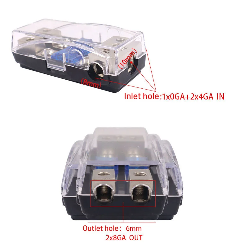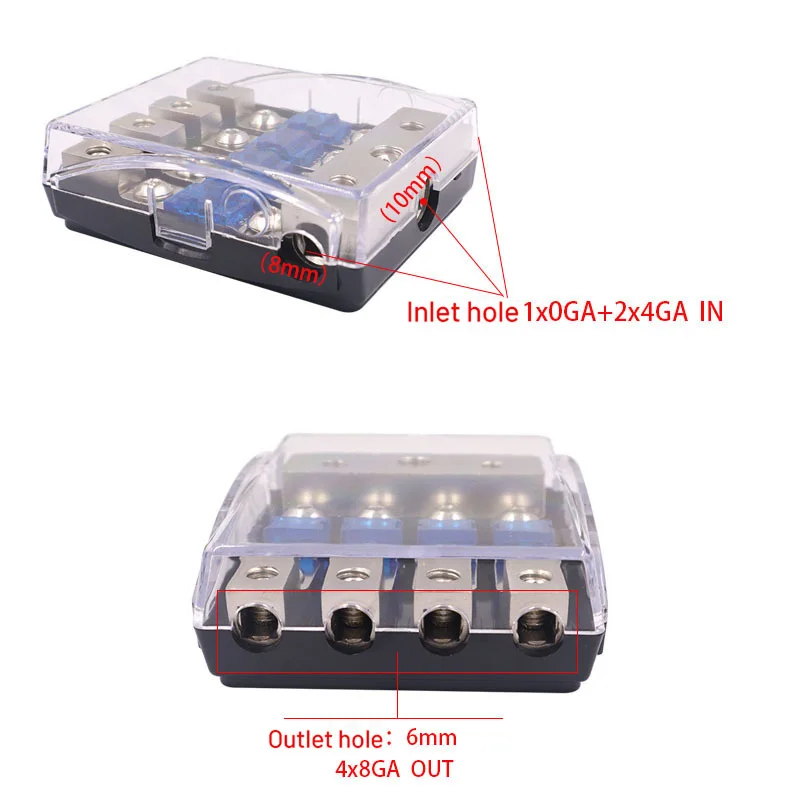 Этот мини-держатель предохранителя ANL предназначен для приема одного 0 и (двух) 4 проводных входов и имеет (три) 8 выходов датчика.