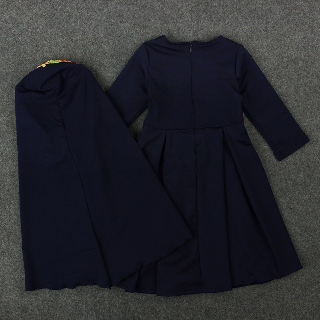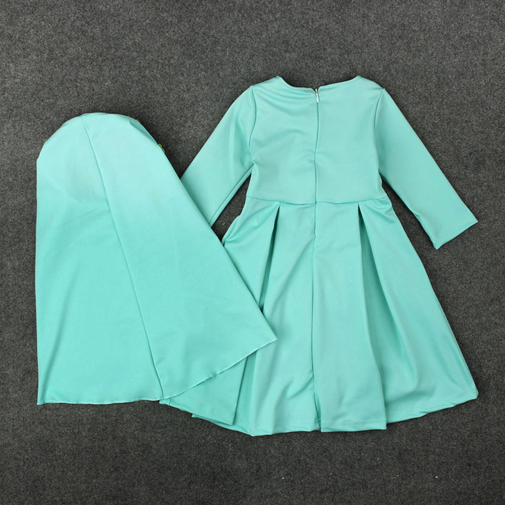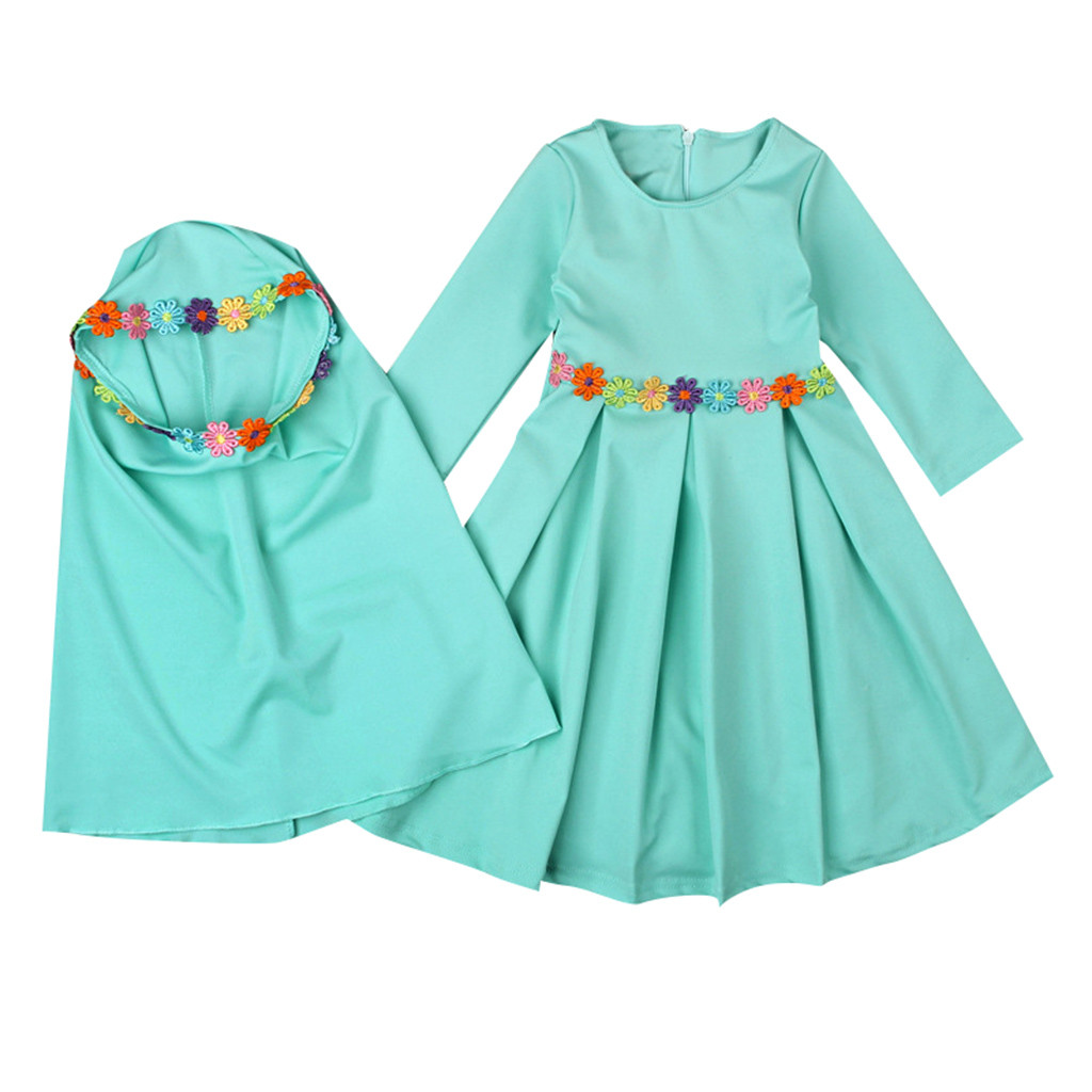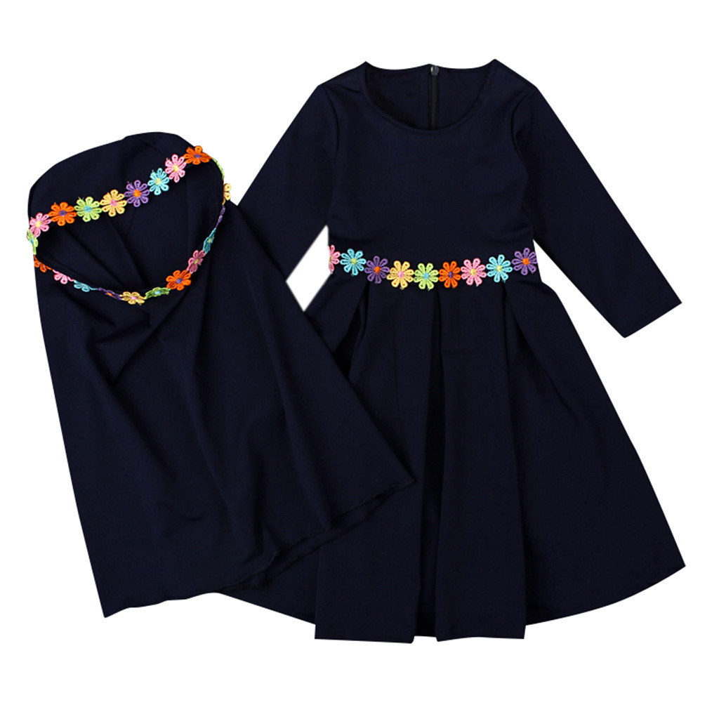 Мусульманское длинное платье с длинными рукавами и вышитым хиджабом для маленьких девочек