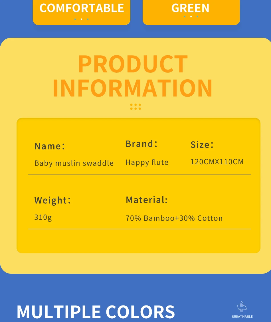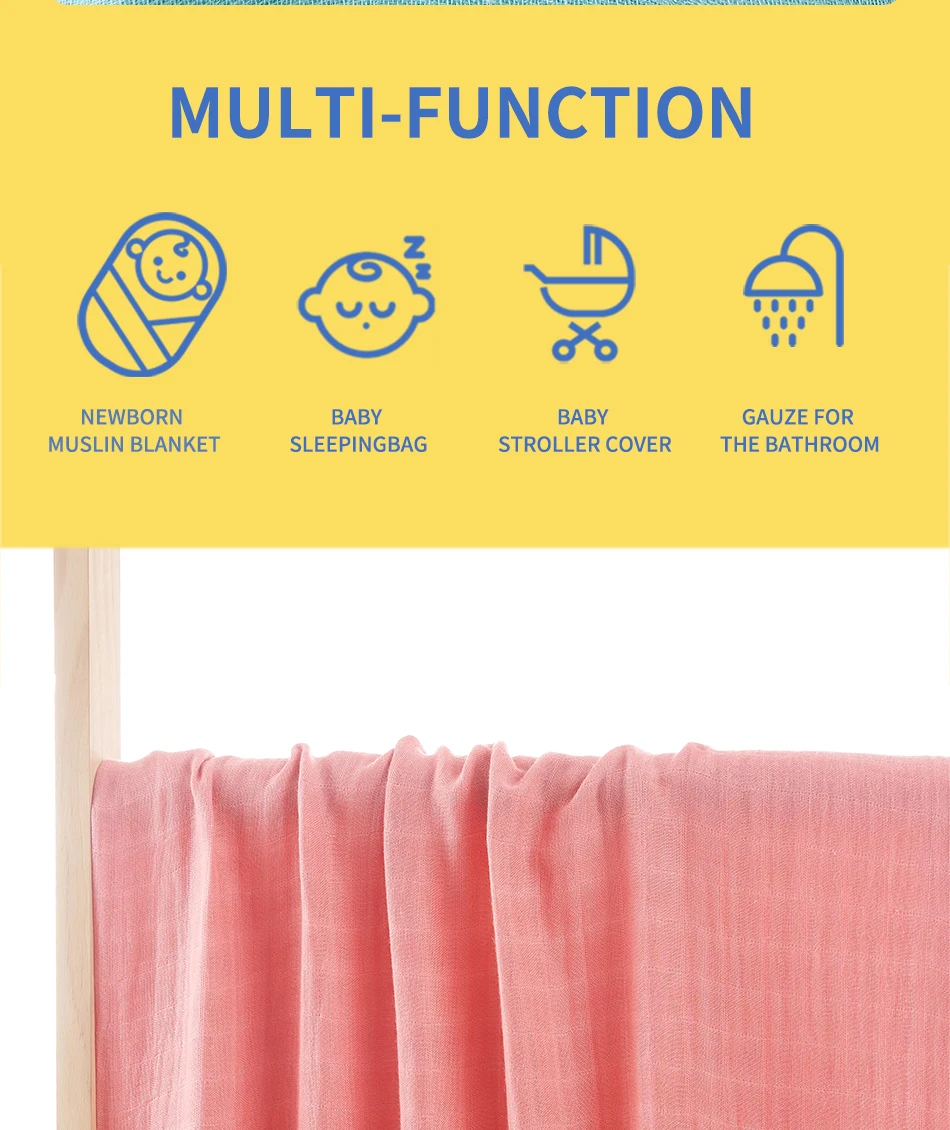 Ваша муслиновая обертка нежная против новой, чувствительной кожи и помогает регулировать температуру ребенка и предотвращает перегрев-идеально подходит для жаркого лета и холодной зимы. При пеленании эластичная ткань имитирует ощущение присутствия в утробе матери, что способствует лучшему сну.