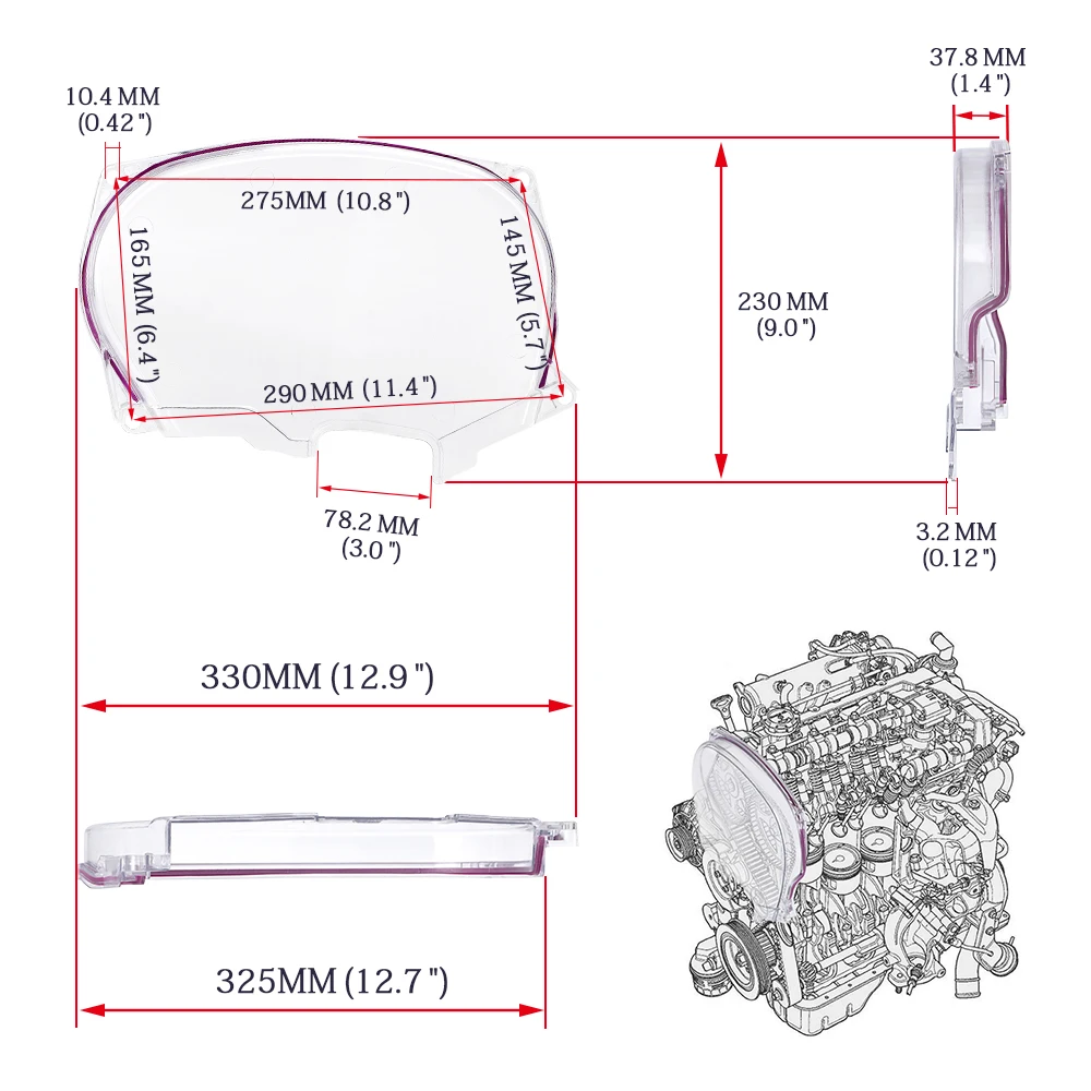 The Clear Cam Gear Cover is almost an exact duplicate of the factory part.