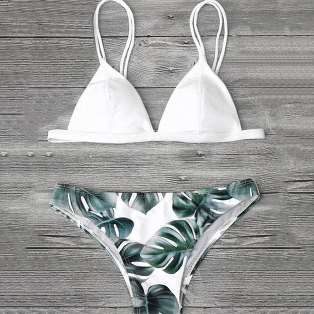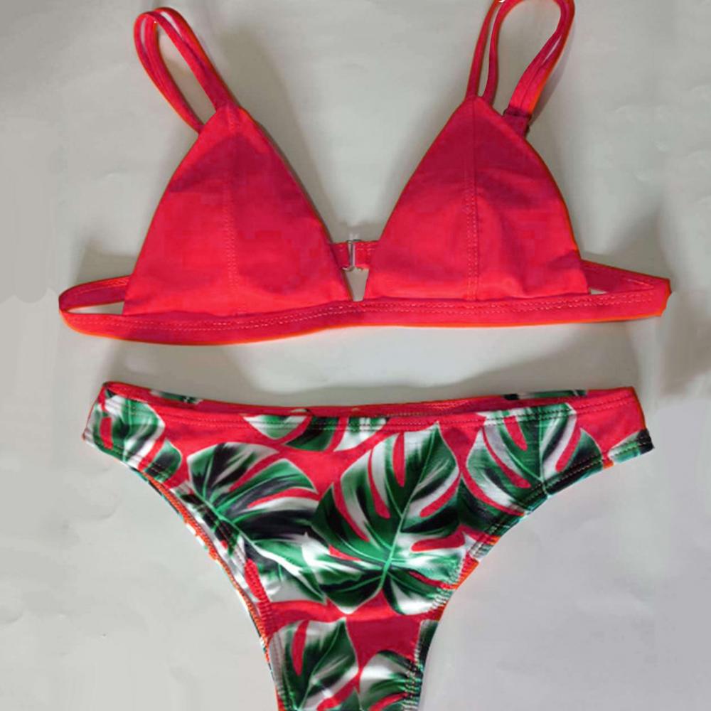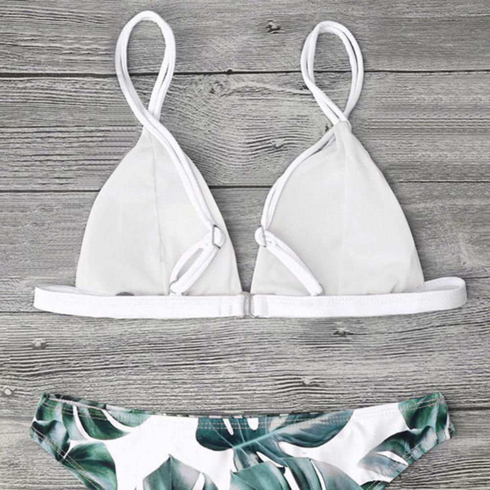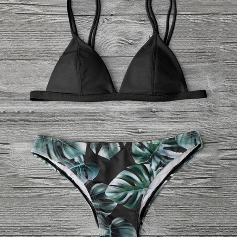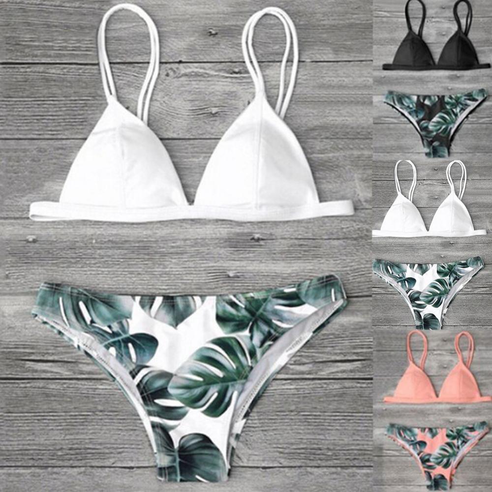 2 шт., женский летний сексуальный бюстгальтер с принтом листьев, бюстгальтер с подкладкой, комплект бикини, пляжный купальник