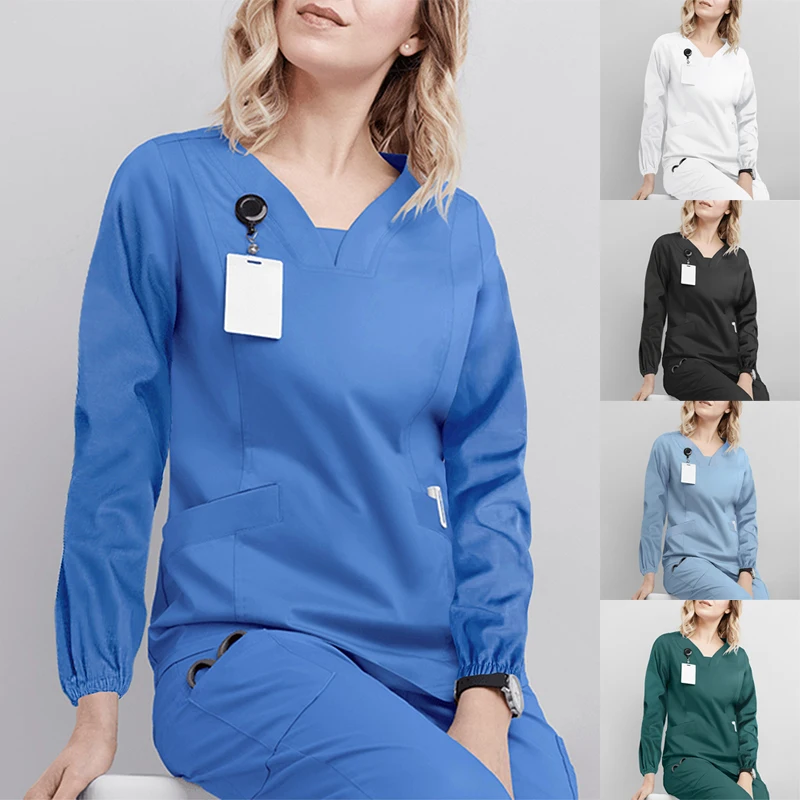 Унисекс медицинская Униформа Хирургическая Одежда с длинным рукавом v-образным вырезом Топ больница/Салон красоты Рабочий костюм тайский массаж спа женский комбинезон