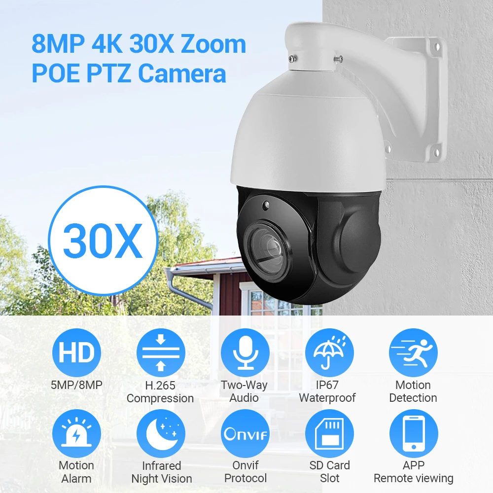 Камера ptz имеет устойчивый алюминиевый чехол и водонепроницаемый дизайн IP67, он может поддерживать отличную производительность даже в экстремальных погодных условиях, таких как снег, мороз и солнце