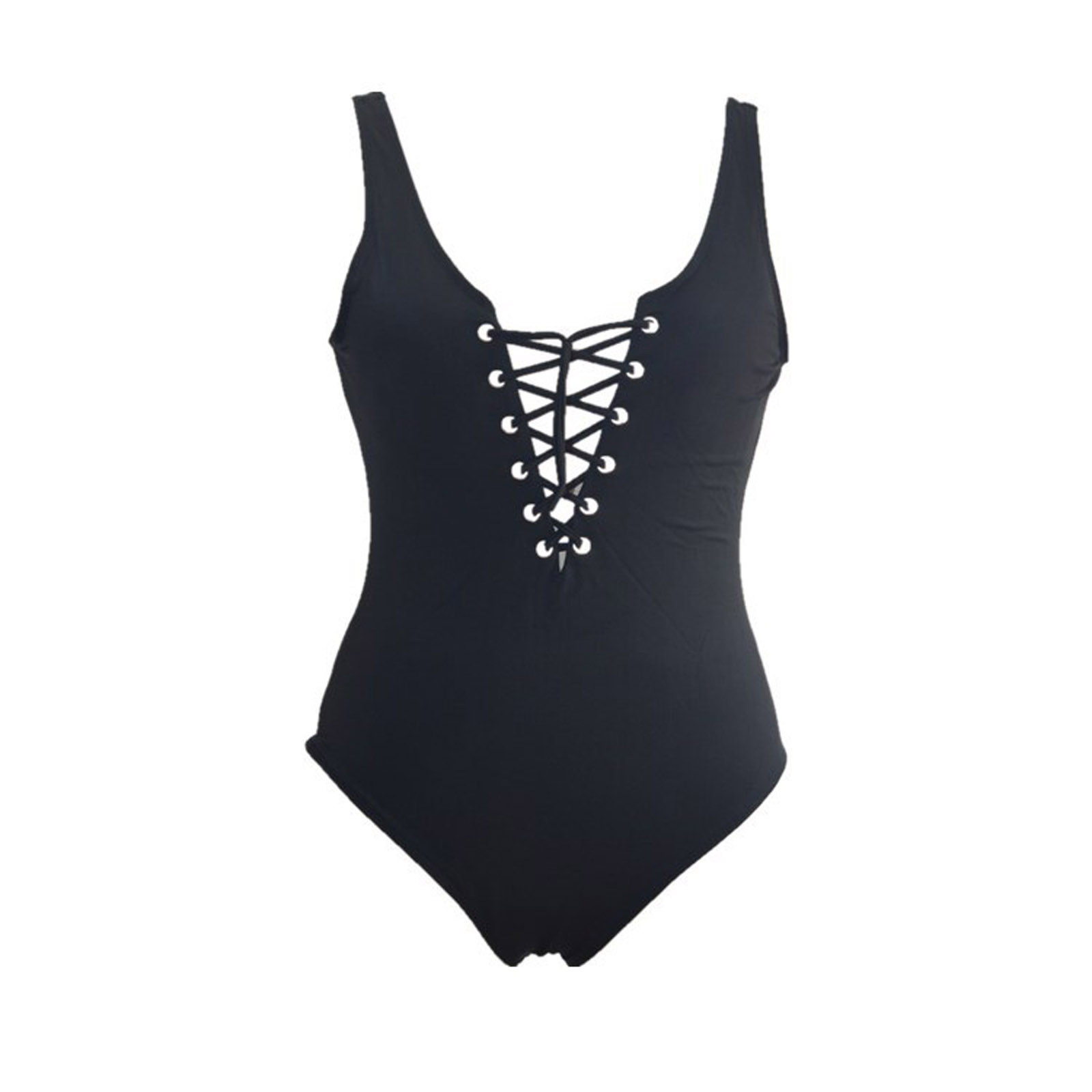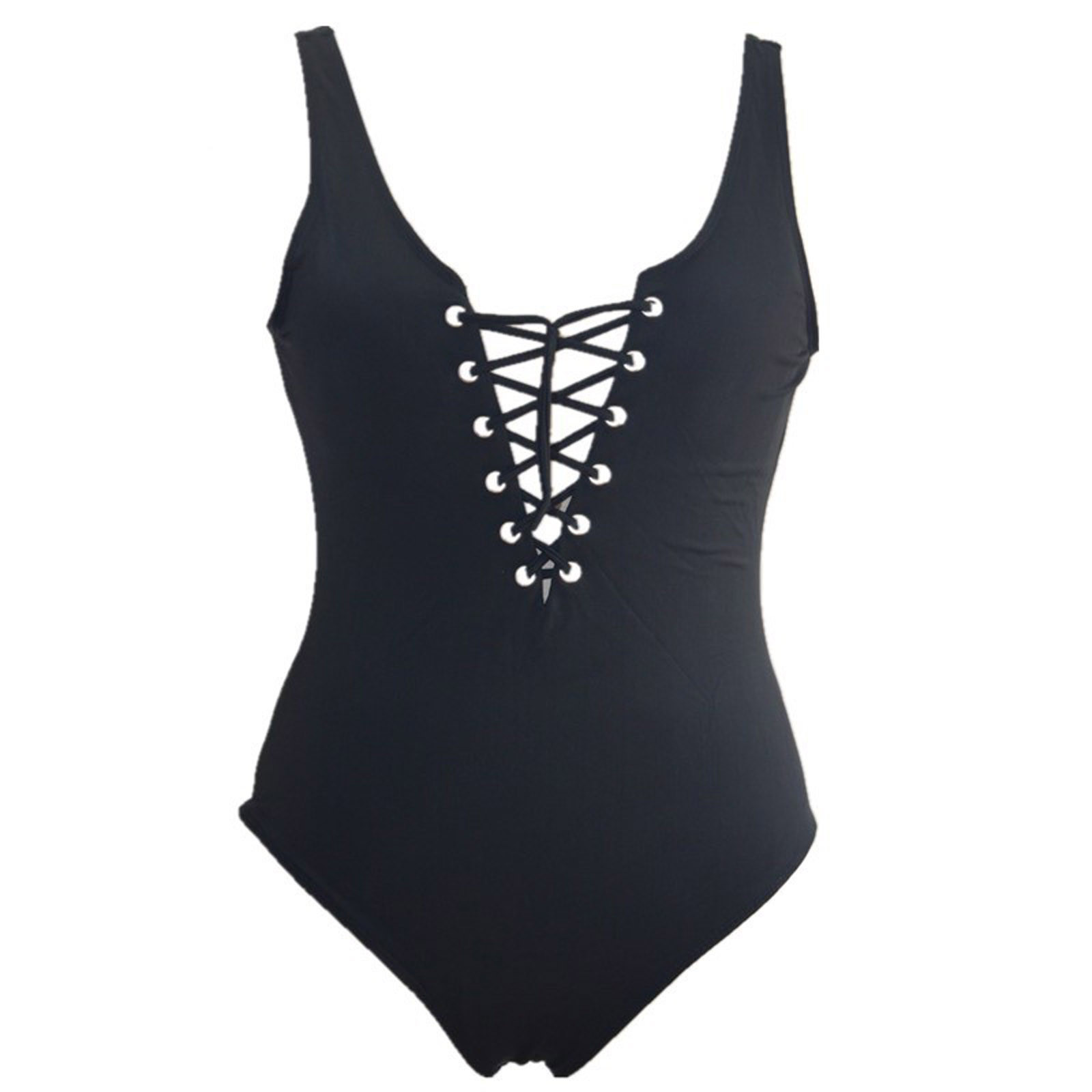 Женский сексуальный сплошной цвет цельный v-образный вырез ремень крест ремень пляжная одежда бикини