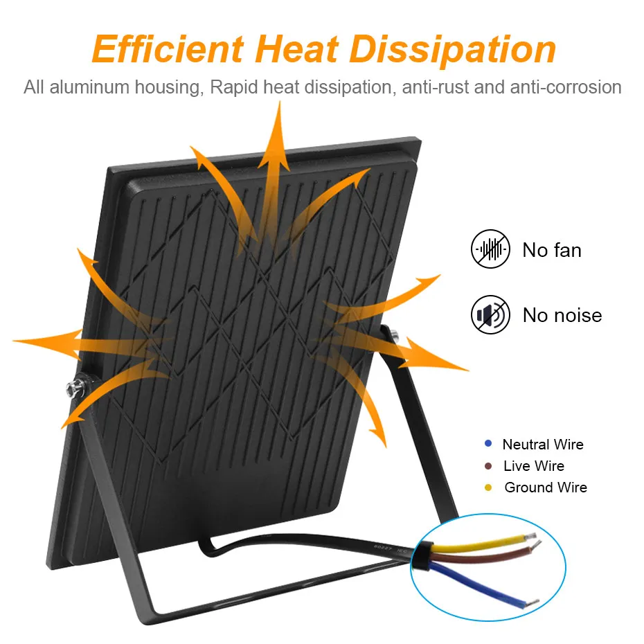 2. IP66 Waterproof.With IP66 rate, this light can be widely used in outdoor and indoor lighting projects, including billboards, gardens, warehouses etc.Please note that the light can't be soaked in the water.