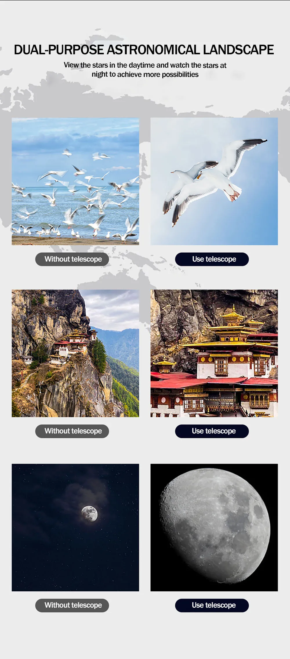 3. В изделии есть светофильтр с Луной, вы можете наблюдать за солнцем, будьте осторожны, чтобы не смотреть на солнце напрямую, иначе он сожжет ваши глаза.