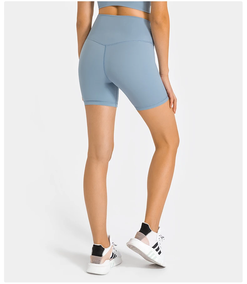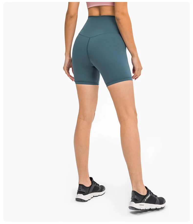 ABS LOLI No Front Seam High Waist Yoga Shorts Women 6'' Inseam Fitness Athletic Workout Running Shorts With Inner Pocket 17 Colors