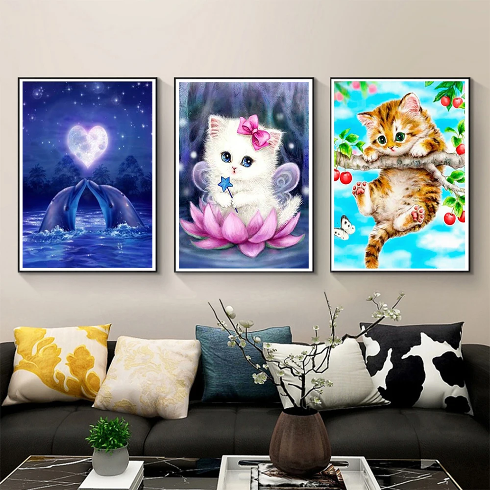 5D алмазная картина набор кошка Дельфин Животное мозаика Сделай Сам пейзаж Пляж Алмазная вышивка стразы украшение для дома подарок