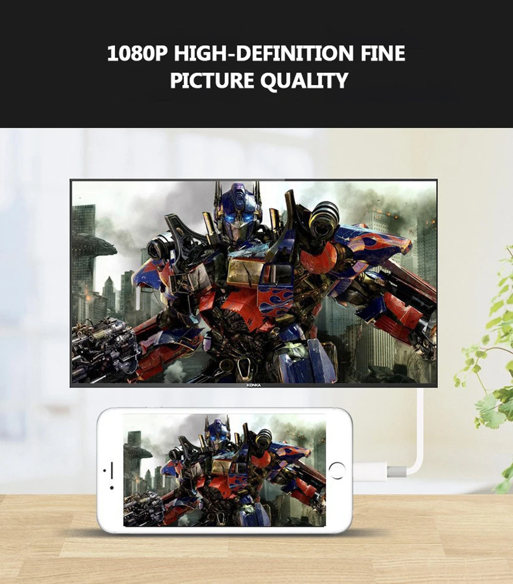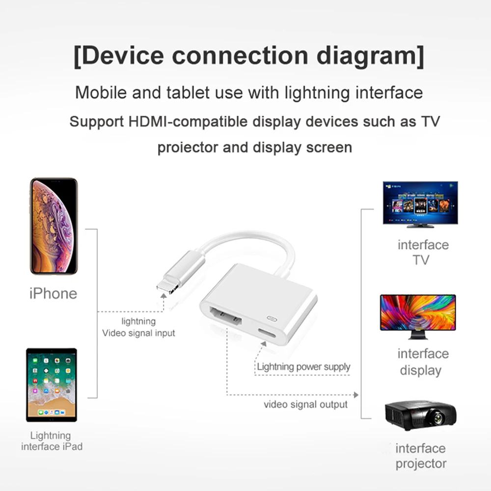 1. Легко подключитьIPhone 5/ 5s/ 6/ 6s/ 6 plus/ 6s plus/ 7/ 7 plus и iPad 4/Mini-HD TV.