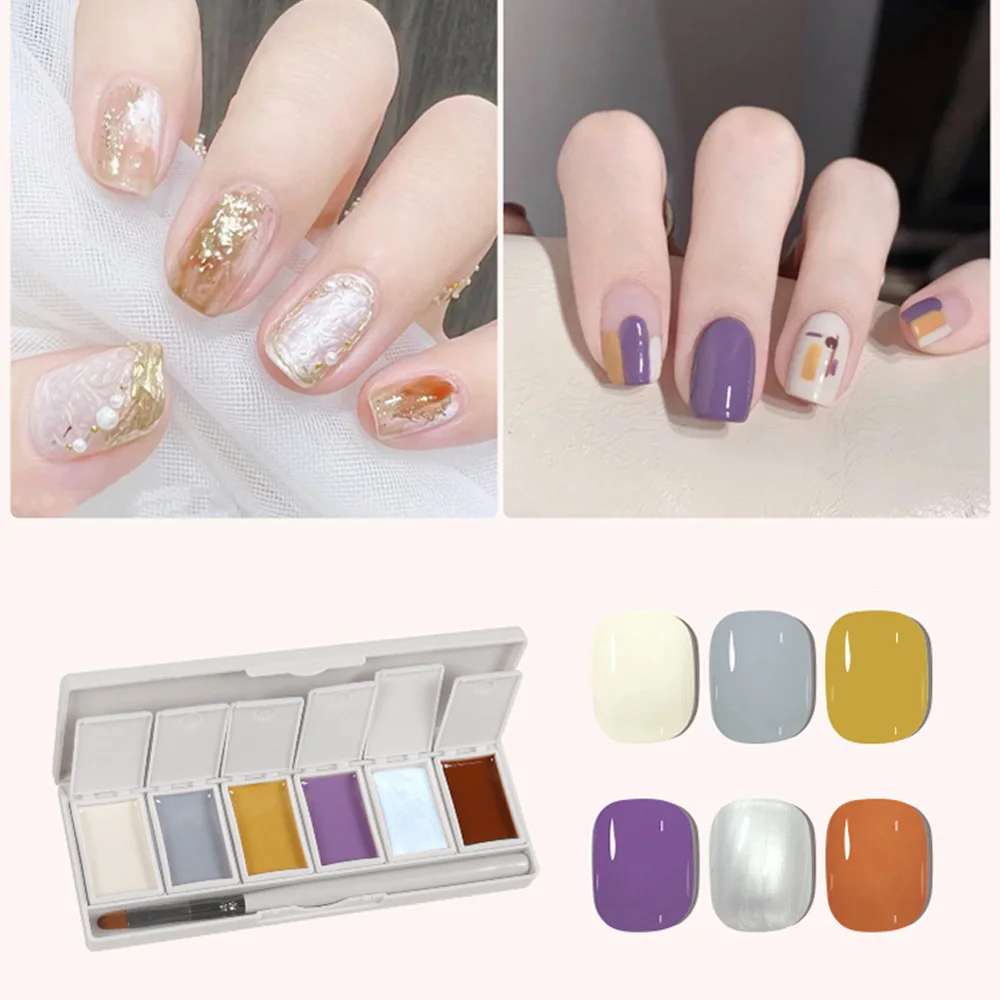 6 цветов, Macaron, твердый гель для ногтей, палитра, блестящий гель для рисования, набор для дизайна ногтей, Полупостоянный, впитывающий УФ-Гель-лак