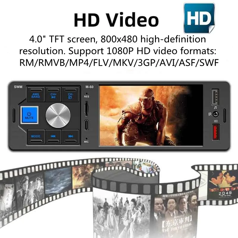 7. 4" TFT HD screen,800x480 HD resolution clear, delicate picture. Support 1080 p hd video formats: RM/RMVB/MP4 / FLV/MKV / 3 gp/AVI/ASF/SWF