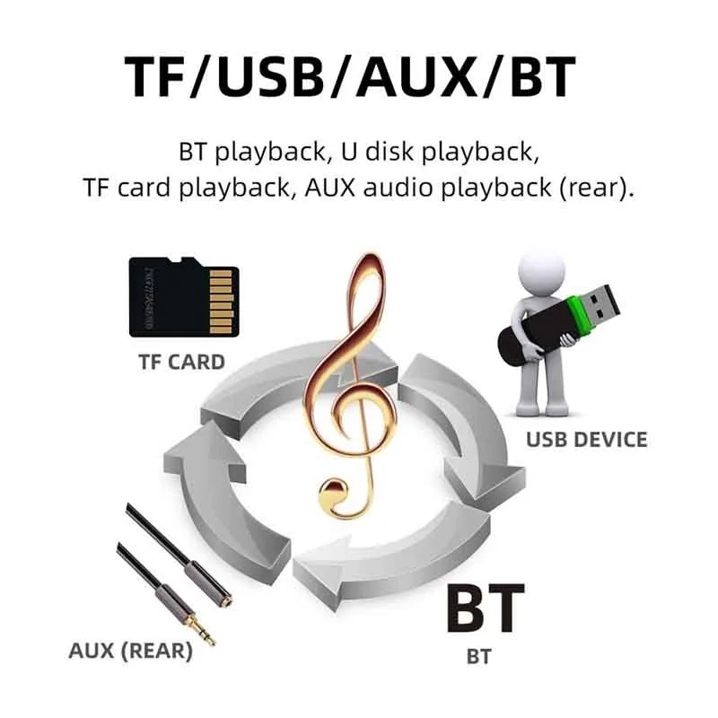 3.TF/USB/AUX/ Bluetooth music playback, easy to select a way to play.