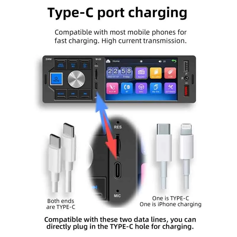 12.Mobile phone charging function: support USB interface charging, Type-c interface charging. Compatible with most mobile phone fast charging,PD fast charging transmission,