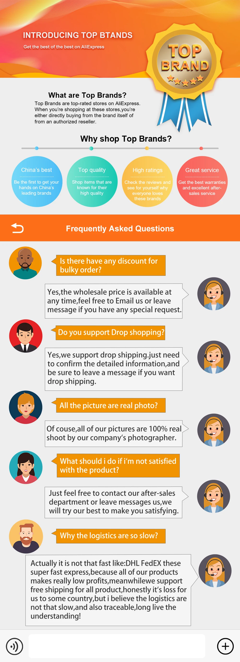 1. Все товары имеют 1 год гарантии. Если ваша покупка не соответствует товарному качеству, пригодности для целей или соответствия описанию, мы можем убедиться, что ваши проблемы решены.