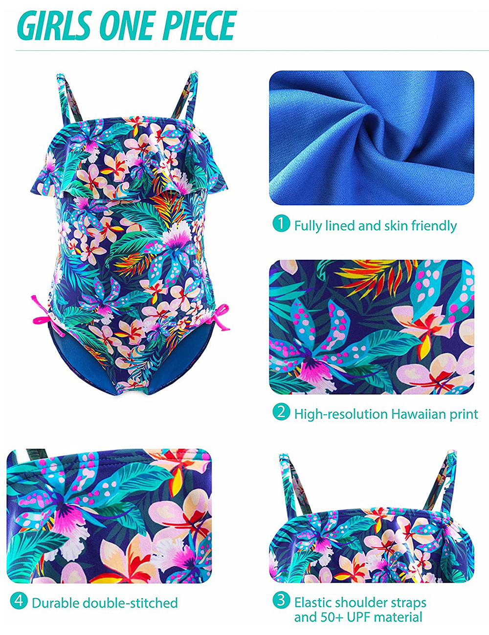 С UPF 50 + защита от солнца с мультяшным принтом, этот набор Рашгард держит ее милой и защищенной весь день.